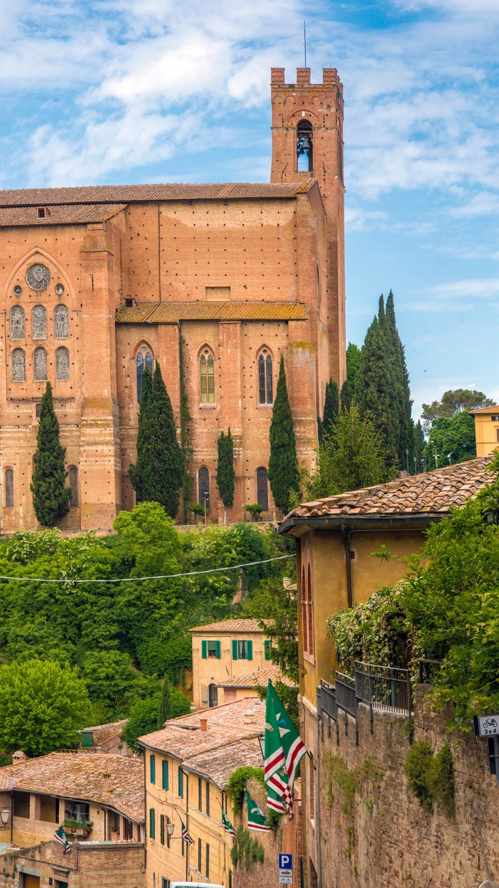 Обои базилика Сан-Доменико, Санджиминьяно, базилика, здание, городок для HD Samsung Galaxy S3/J3/J4/J5, Meizu M5, Sony Xperia L1/L2, заставка, 720x1280 картинка