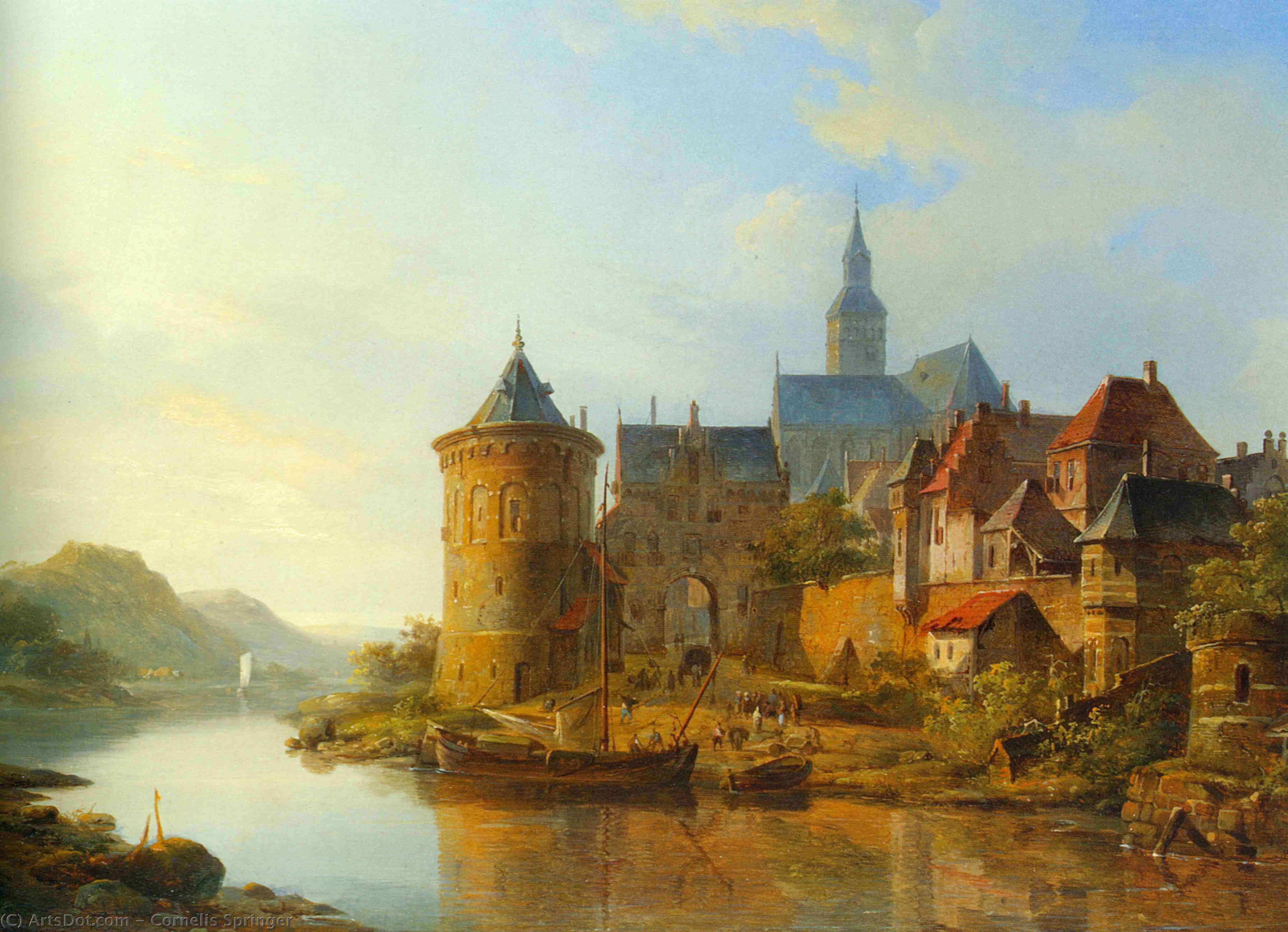 Обои живопись, акварельные краски, водный путь, замок, визуальное искусство, фото, заставка