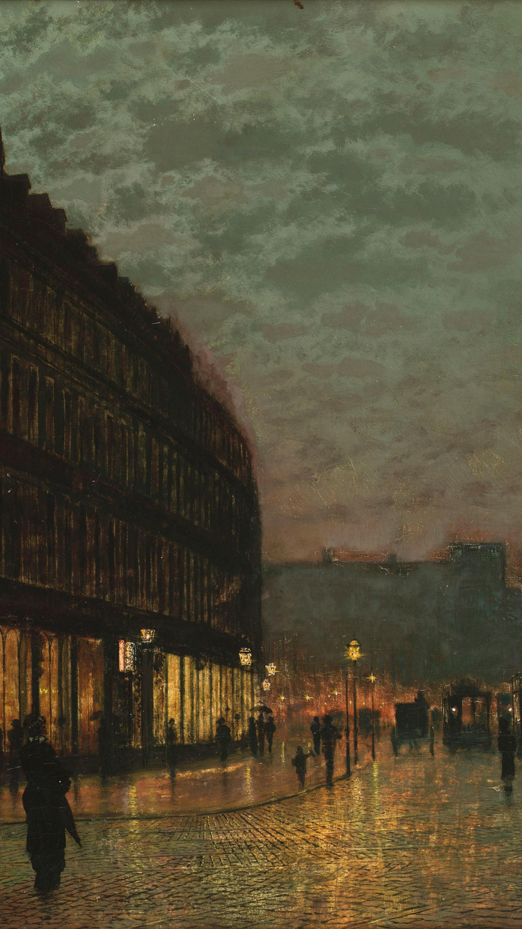 Обои Кабан Переулок Лидс, Лунная переулок, живопись, арт, произведение искусства для iPhone 6, 6S, 7, 8, заставка, 750x1334 картинка