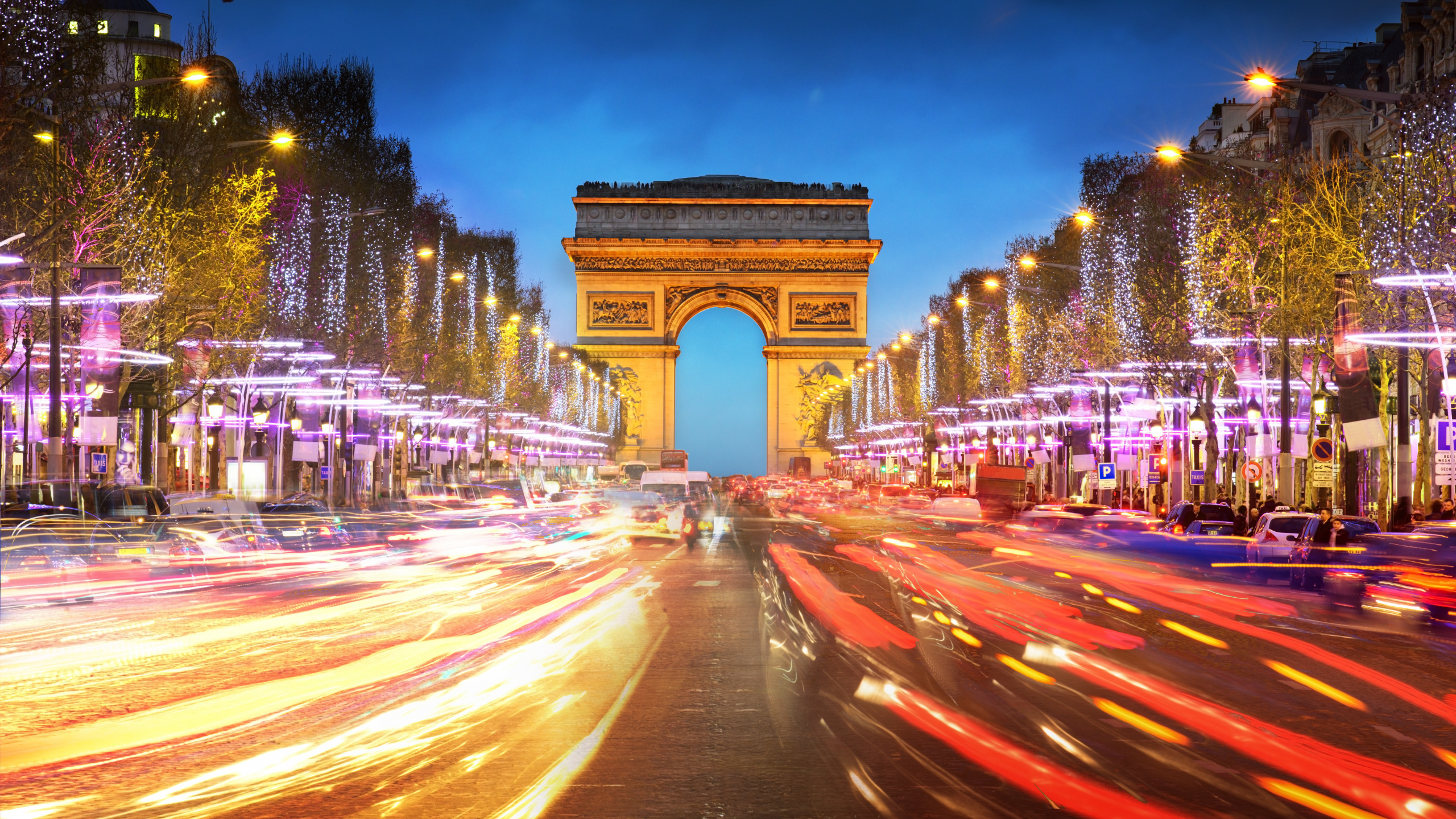 Обои 2560x1440 Триумфальная арка, ориентир, ночь, городской район, город, WQHD, QHD, 16:9 картинка