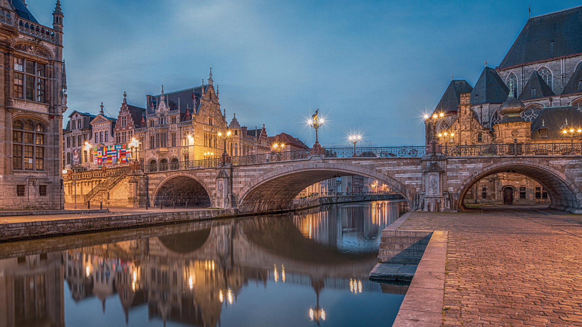 Обои 1920x1080 отражение, ориентир, водный путь, город, городок, Full HD, HDTV, 1080p 16:9 картинка