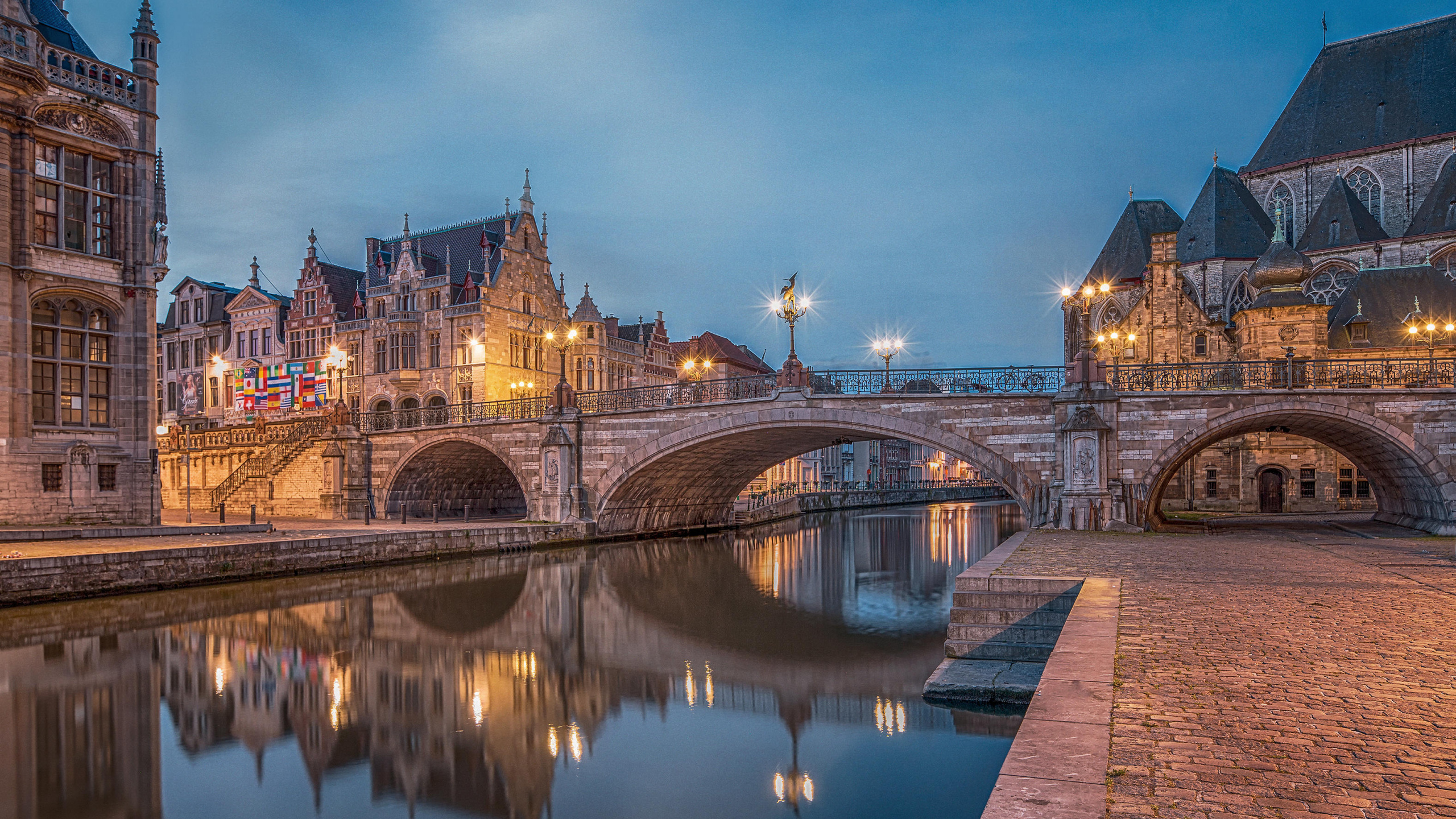Обои 2560x1440 отражение, ориентир, водный путь, город, городок, WQHD, QHD, 16:9 картинка