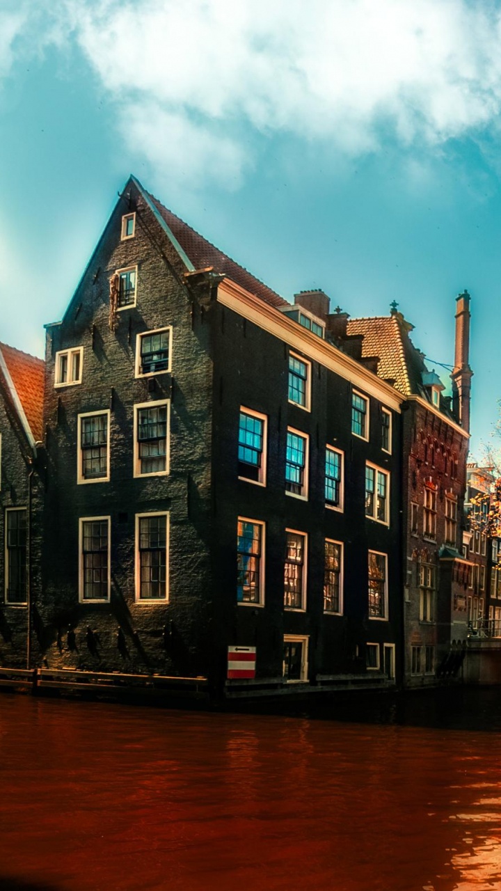 Обои Амстердам, водный путь, канал, городок, отражение для HD Samsung Galaxy S3/J3/J4/J5, Meizu M5, Sony Xperia L1/L2, заставка, 720x1280 картинка