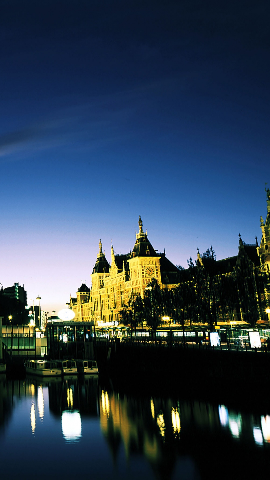 Обои отражение, достопримечательность, ночь, городок, водный путь на телефон Android, 1080x1920 Full HD картинки
