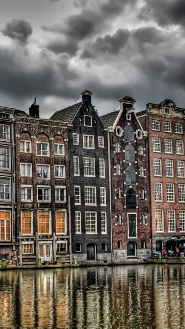 Обои водный путь, отражение, канал, вода, городок для HD Samsung Galaxy S3/J3/J4/J5, Meizu M5, Sony Xperia L1/L2, заставка, 720x1280 картинка