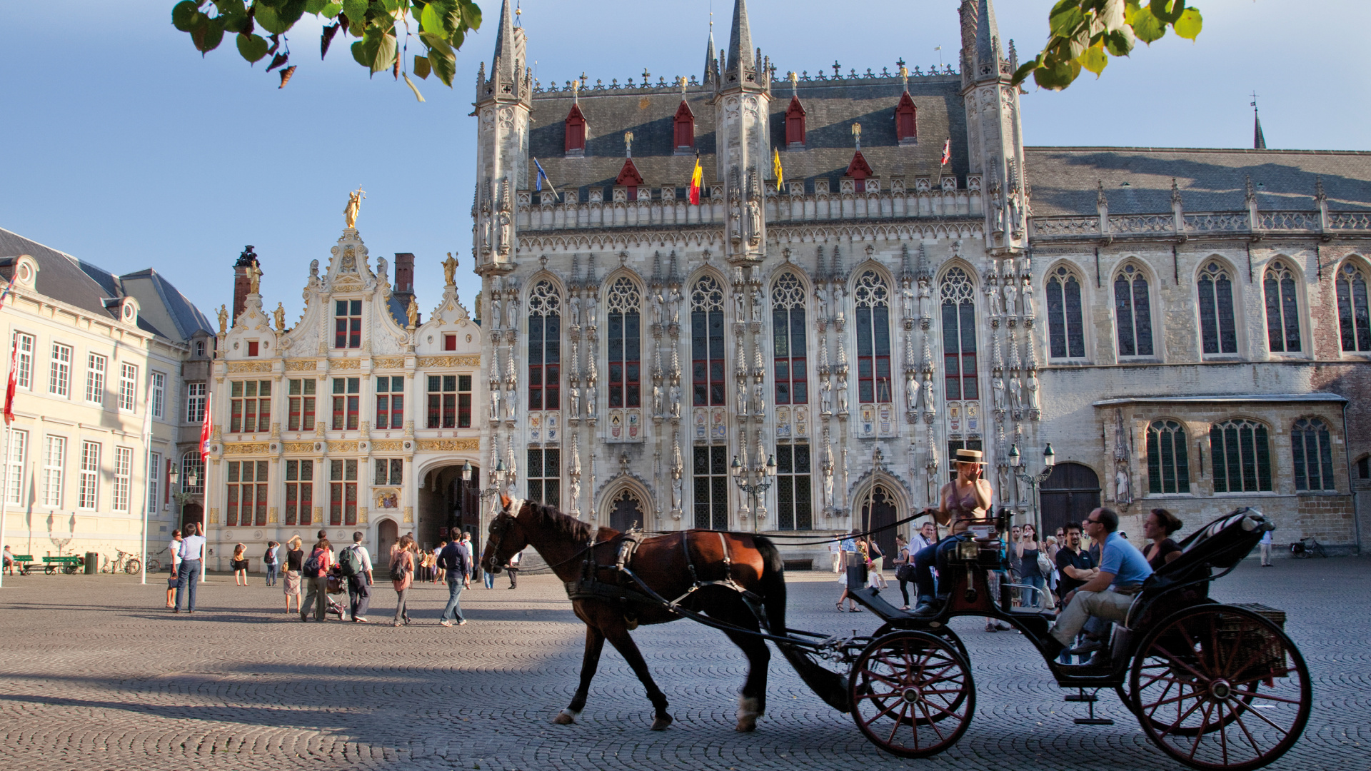 Обои 1920x1080 мэрия, Амстердам, город, перевозка, лошадь и багги, Full HD, HDTV, 1080p 16:9 картинка
