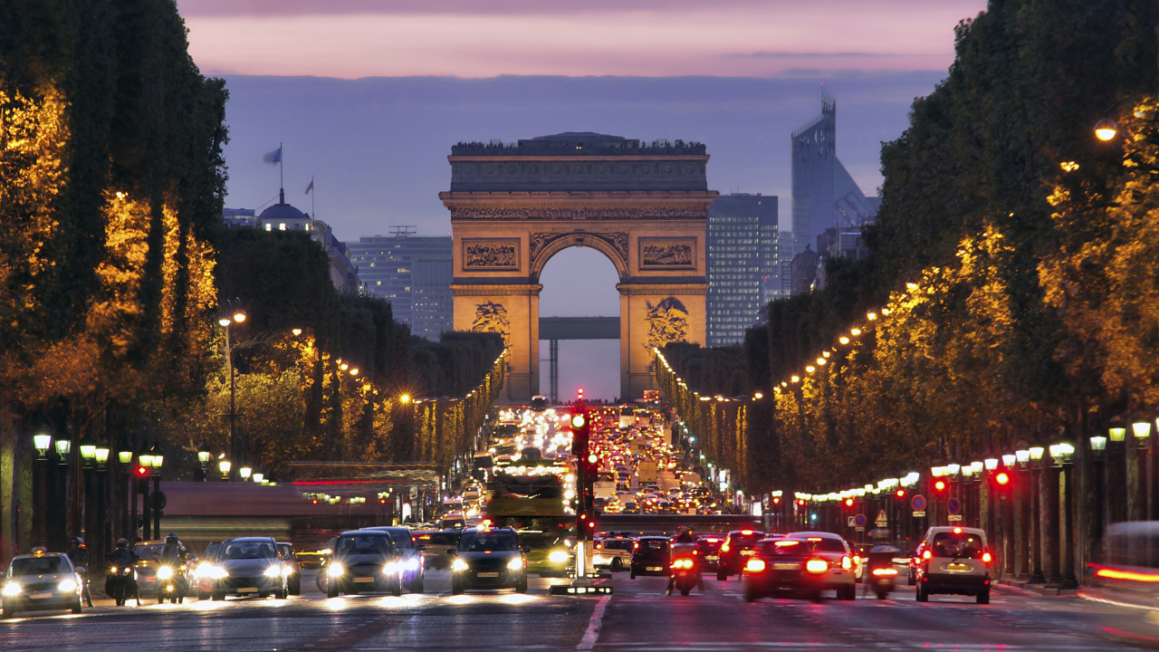 Обои 1280x720 Триумфальная арка, Эйфелева башня, арка, ориентир, архитектура, HD, HDV, 720p, 16:9 картинка