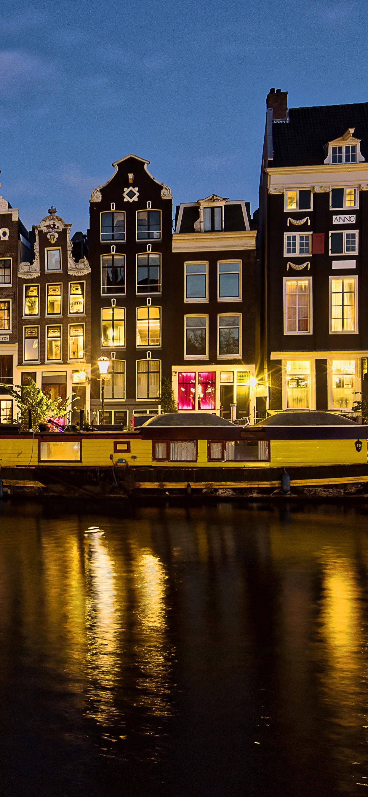 Обои Амстердам, ночь, отражение, водный путь, вода для iPhone XS Max, заставка, 1242x2688 картинка