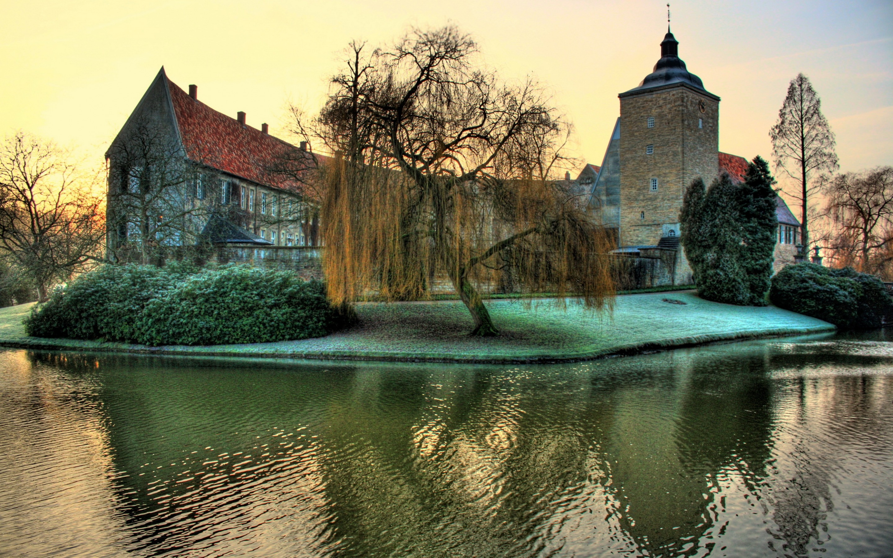 Обои замок, водный замок, вода, отражение, водный путь, фото, заставка