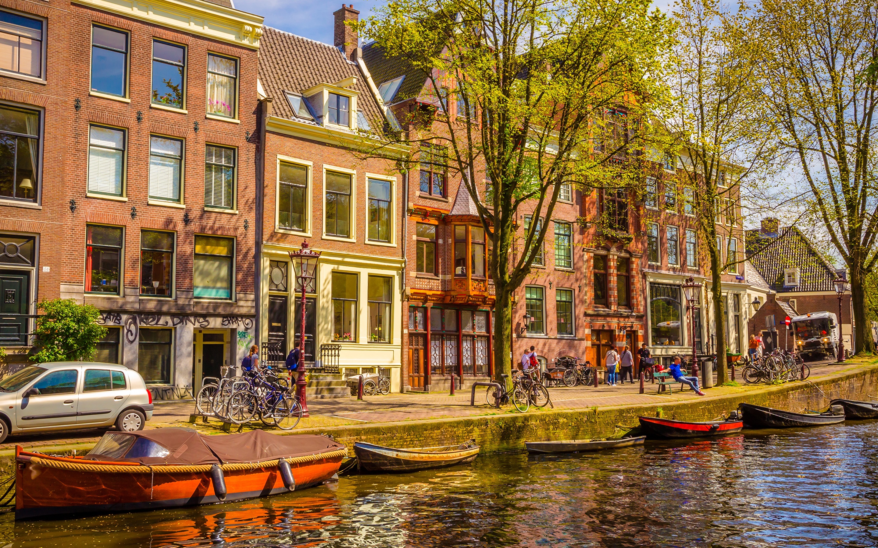 Обои Амстердам, канал, водный путь, городок, соседство, фото, заставка