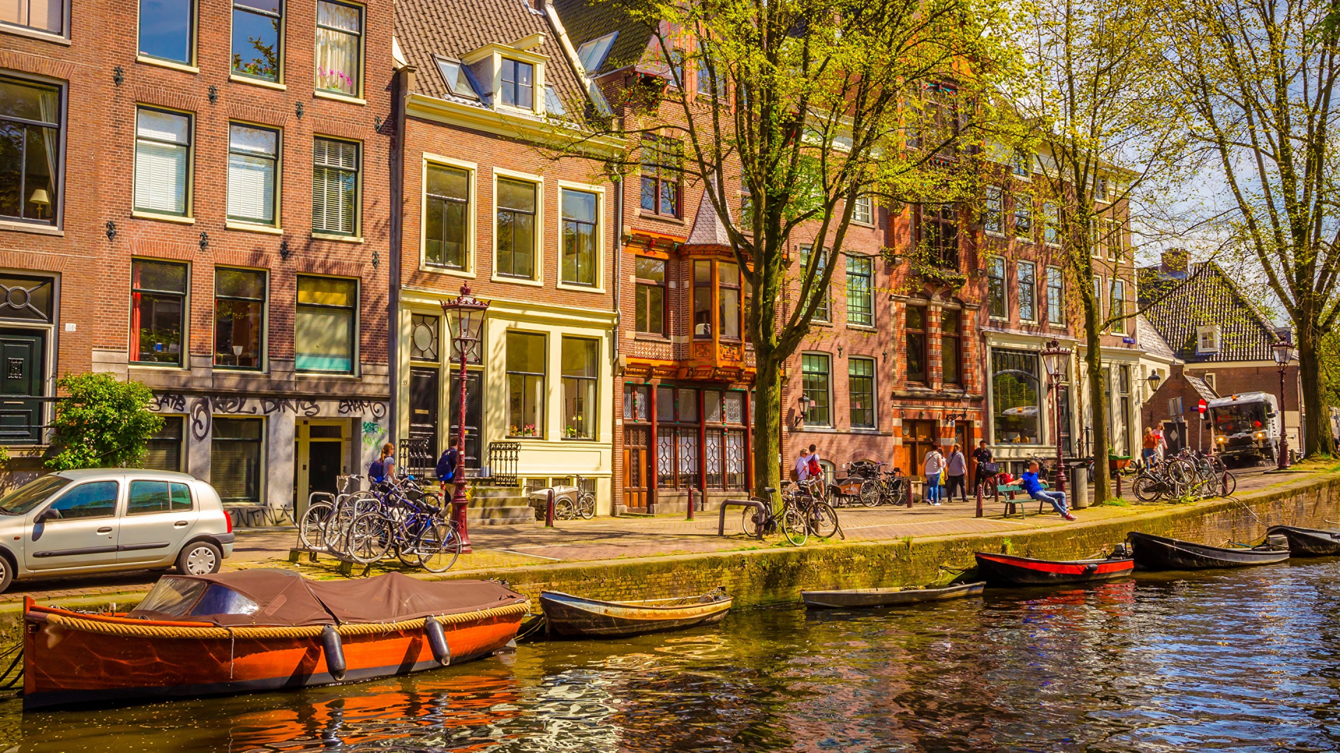 Обои 1920x1080 Амстердам, канал, водный путь, городок, соседство, Full HD, HDTV, 1080p 16:9 картинка