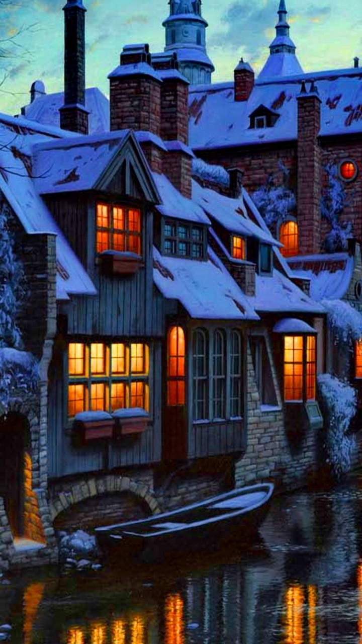Обои вода, водный путь, городок, отражение, вечер для HD Samsung Galaxy S3/J3/J4/J5, Meizu M5, Sony Xperia L1/L2, заставка, 720x1280 картинка