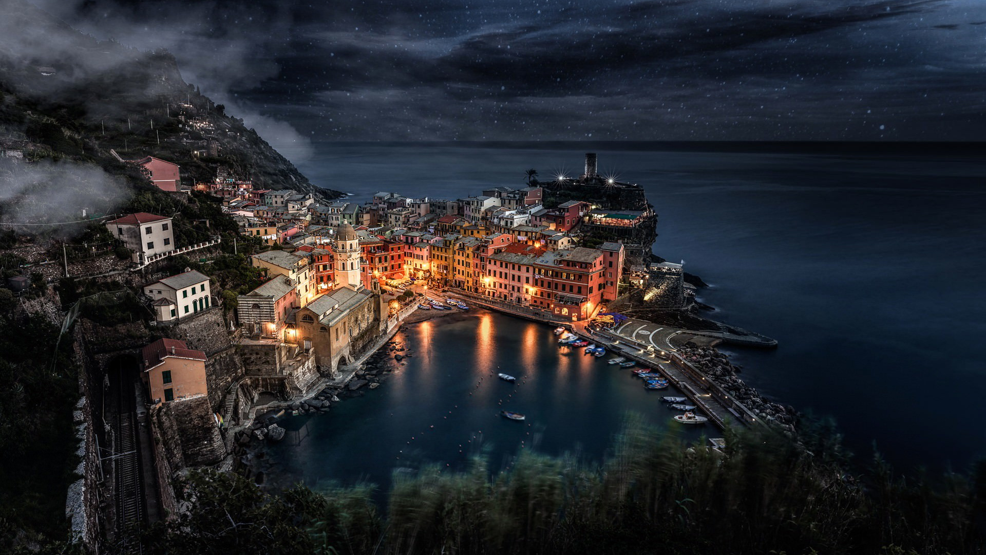 Обои 1920x1080 Манарола, Вернацца, Лигурийское море, природа, ночь, Full HD, HDTV, 1080p 16:9 картинка