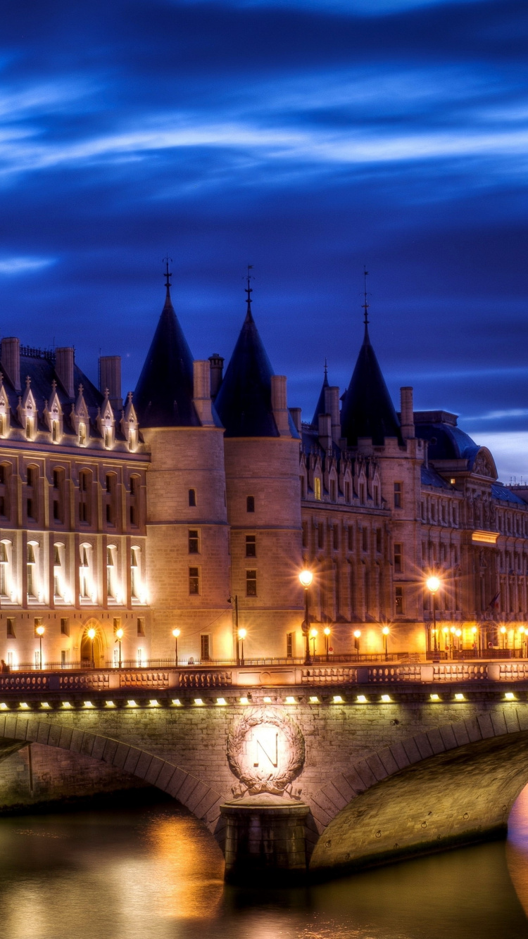 Обои Консьержери, дворец, ориентир, отражение, ночь для iPhone 6, 6S, 7, 8, заставка, 750x1334 картинка