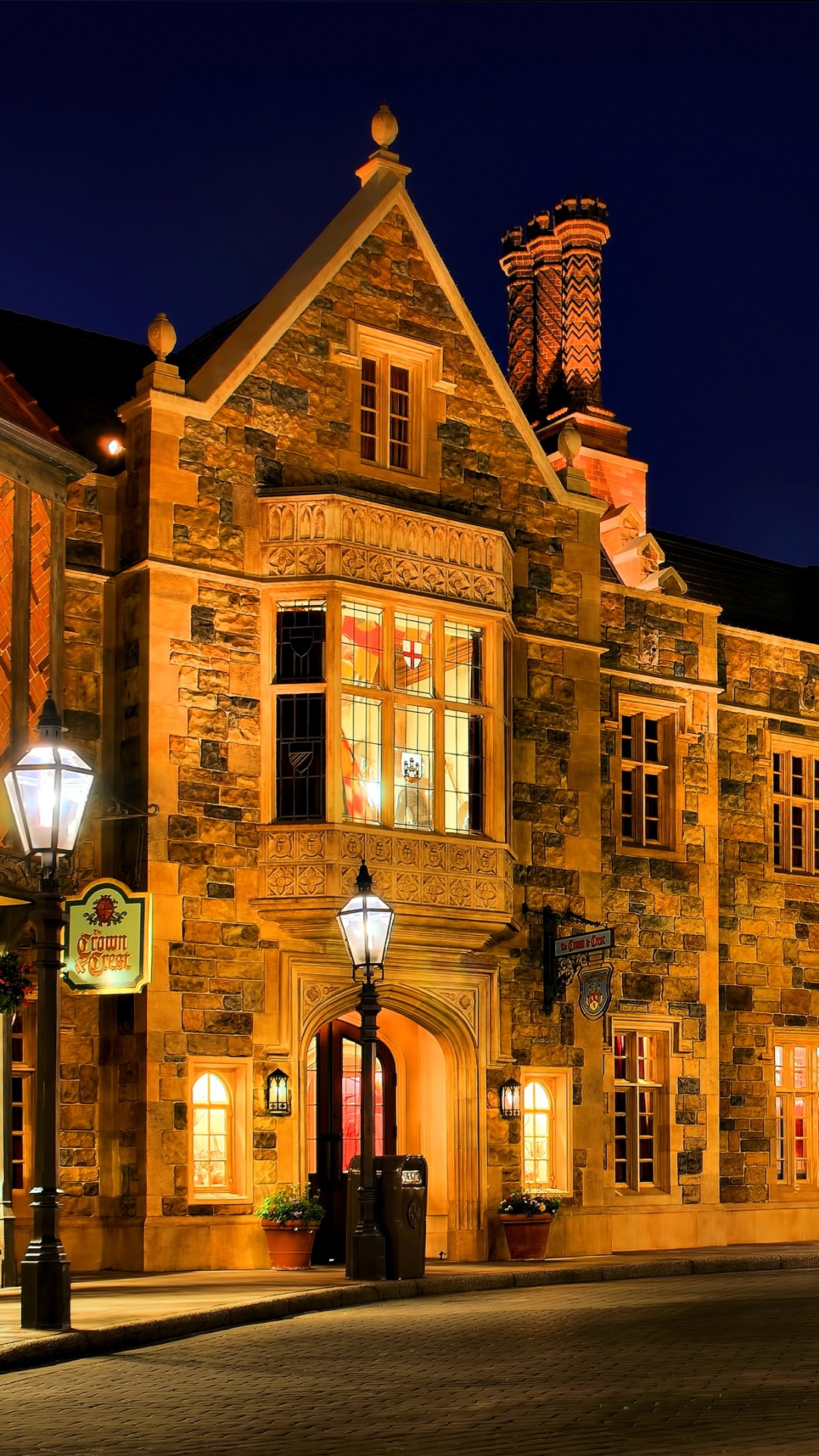 Обои Парижский Диснейленд, ночь, ориентир, городок, освещение на телефон Android, 1080x1920 Full HD картинки