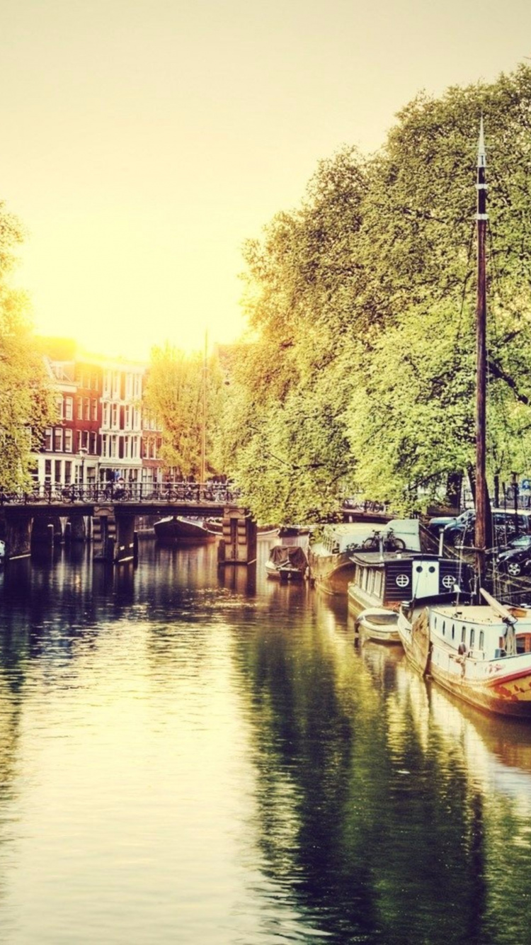 Обои Амстердам, канал, водоем, водный путь, вода для iPhone 6, 6S, 7, 8, заставка, 750x1334 картинка