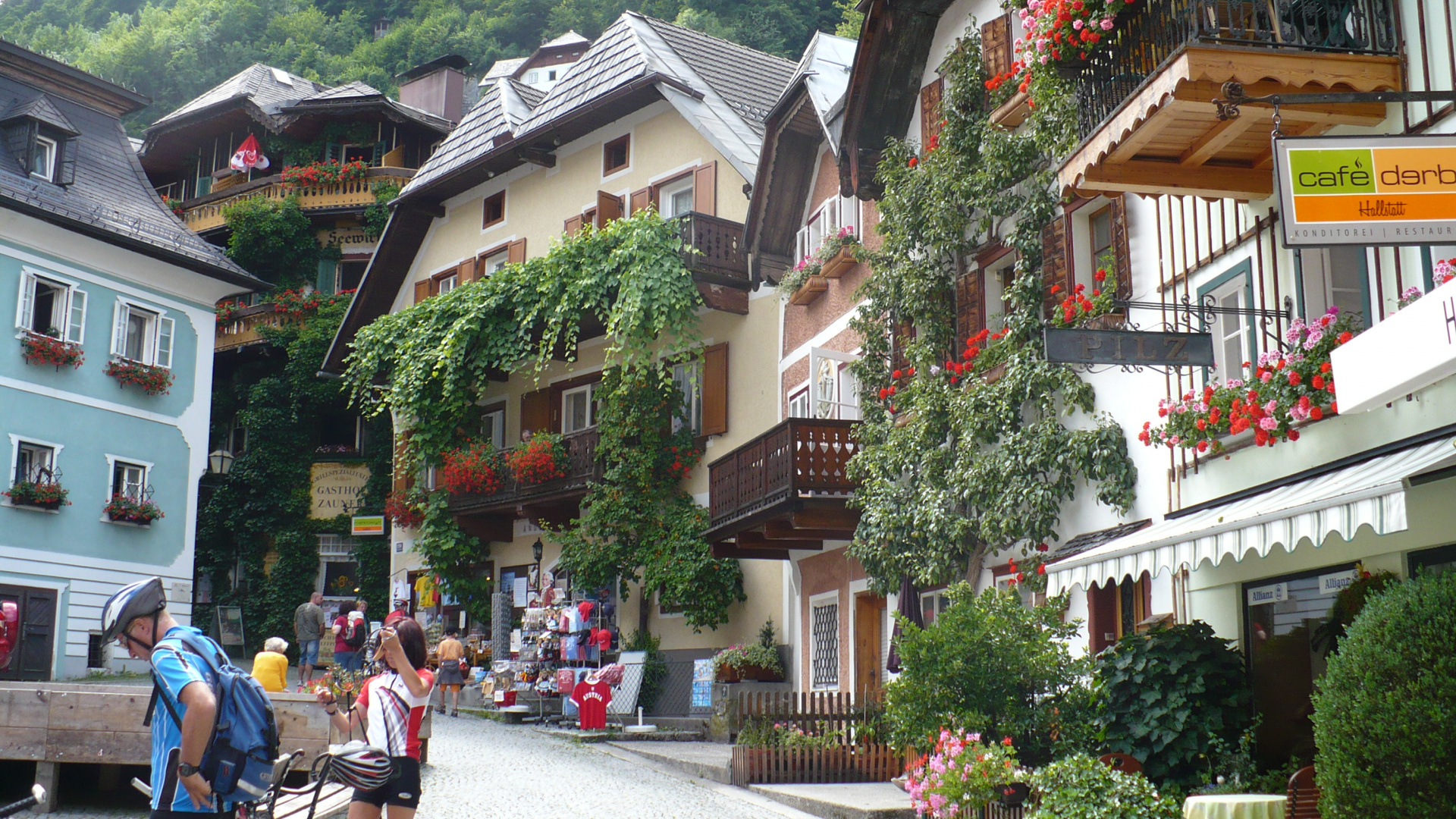Обои 1920x1080 центральная площадь, гальштат, городок, соседство, туризм, Full HD, HDTV, 1080p 16:9 картинка