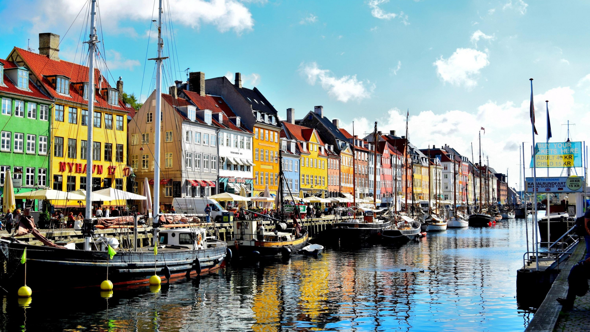 Обои 1920x1080 Дания, перевозка воды, водный путь, канал, гавань, Full HD, HDTV, 1080p 16:9 картинка