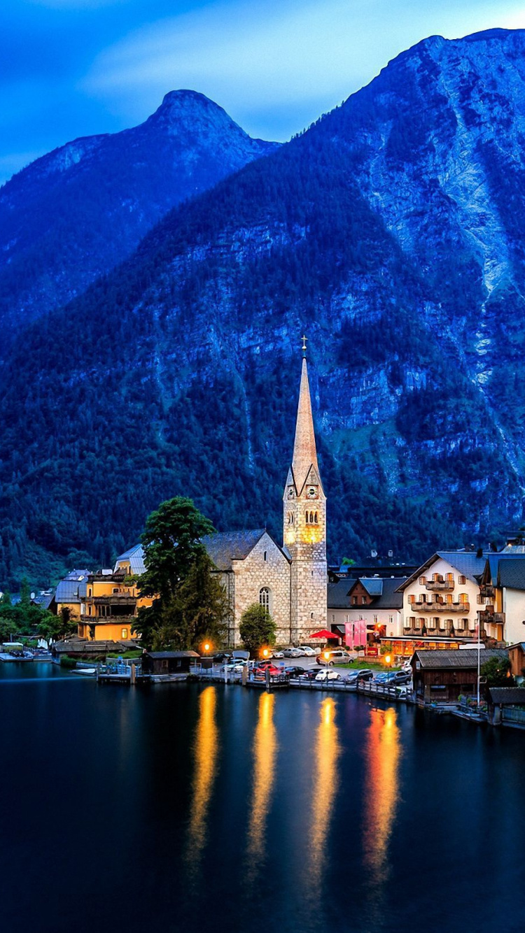 Обои гальштат, природа, гора, ориентир, горный хребет для iPhone 6, 6S, 7, 8, заставка, 750x1334 картинка