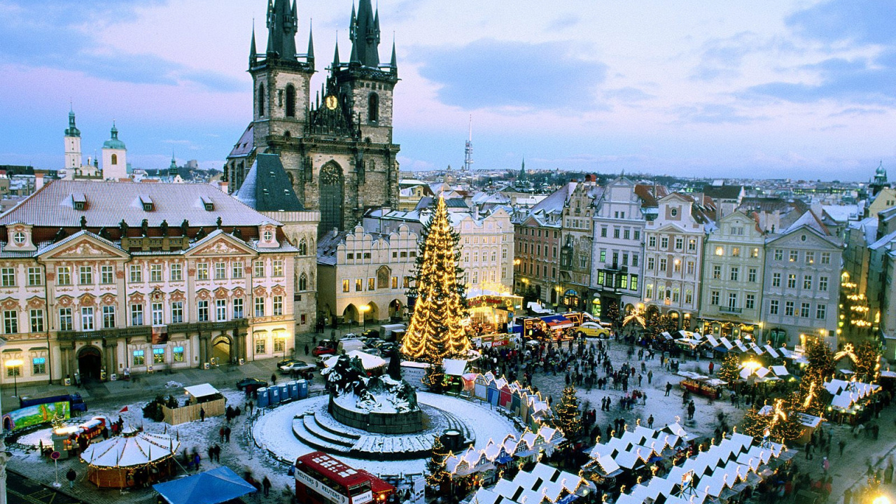 Обои 1280x720 староместская площадь, пражские астрономические часы, Рождественский рынок, ориентир, город, HD, HDV, 720p, 16:9 картинка