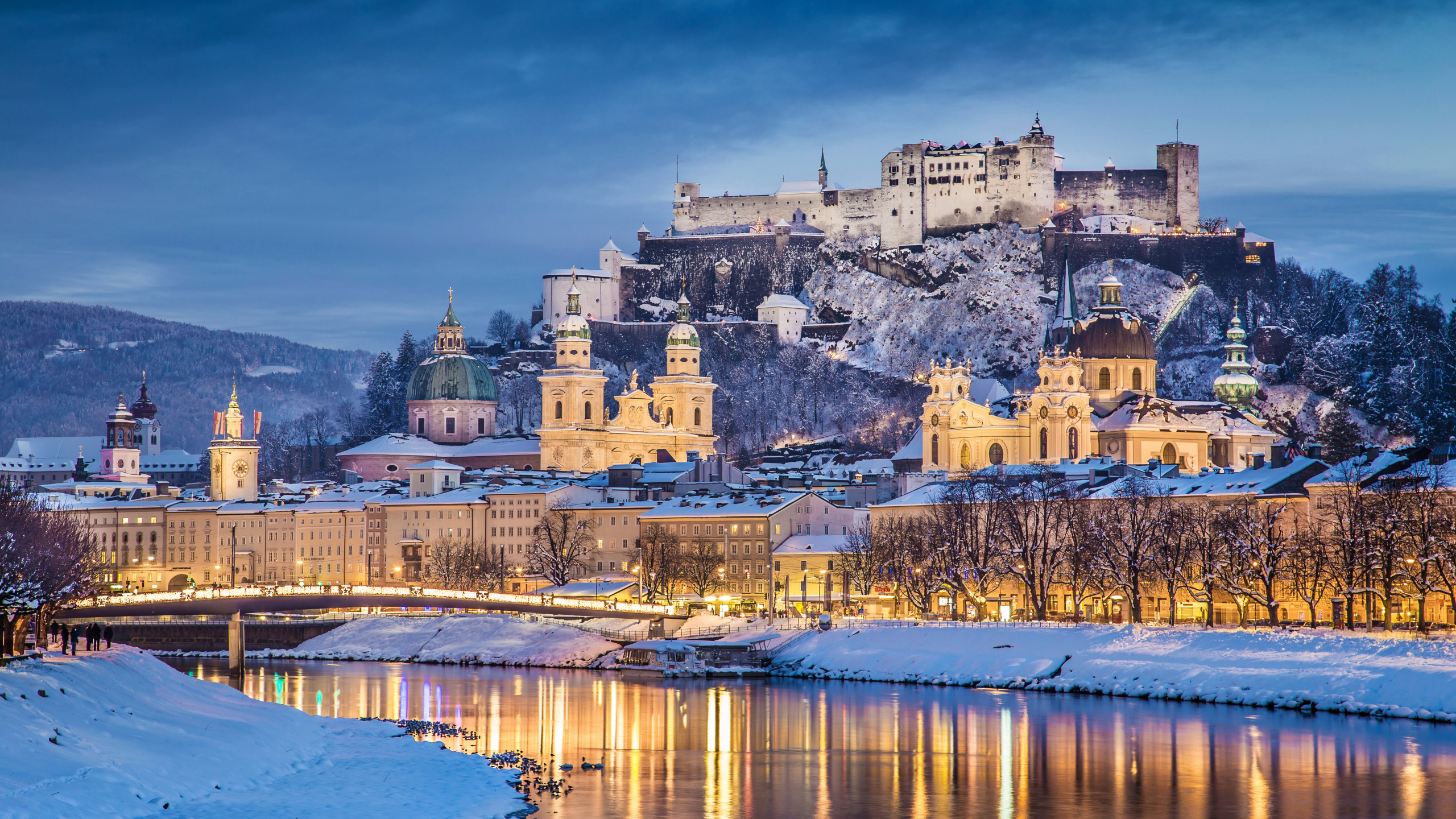 Обои 2560x1440 городок, замок, зима, город, отражение, WQHD, QHD, 16:9 картинка