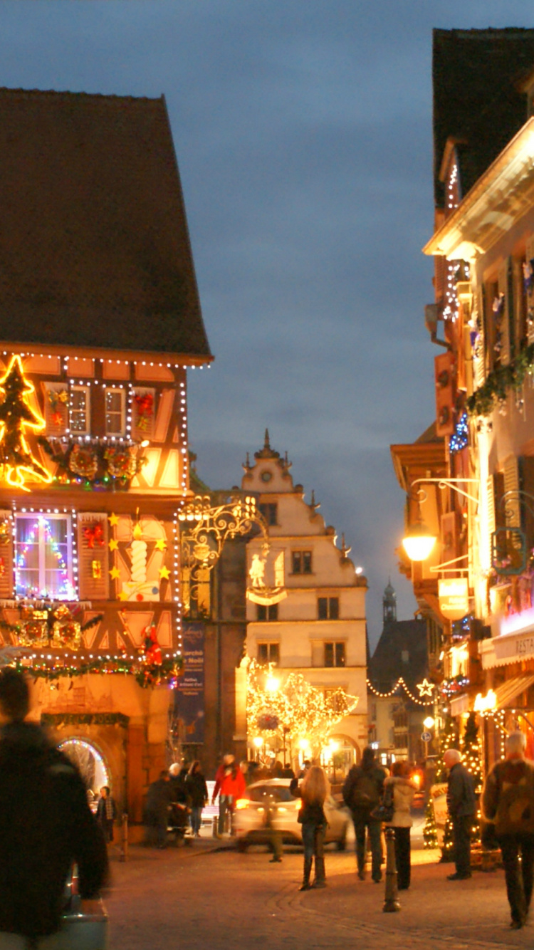 Обои Кольмар, городок, ночь, город, вечер для iPhone 6, 6S, 7, 8, заставка, 750x1334 картинка