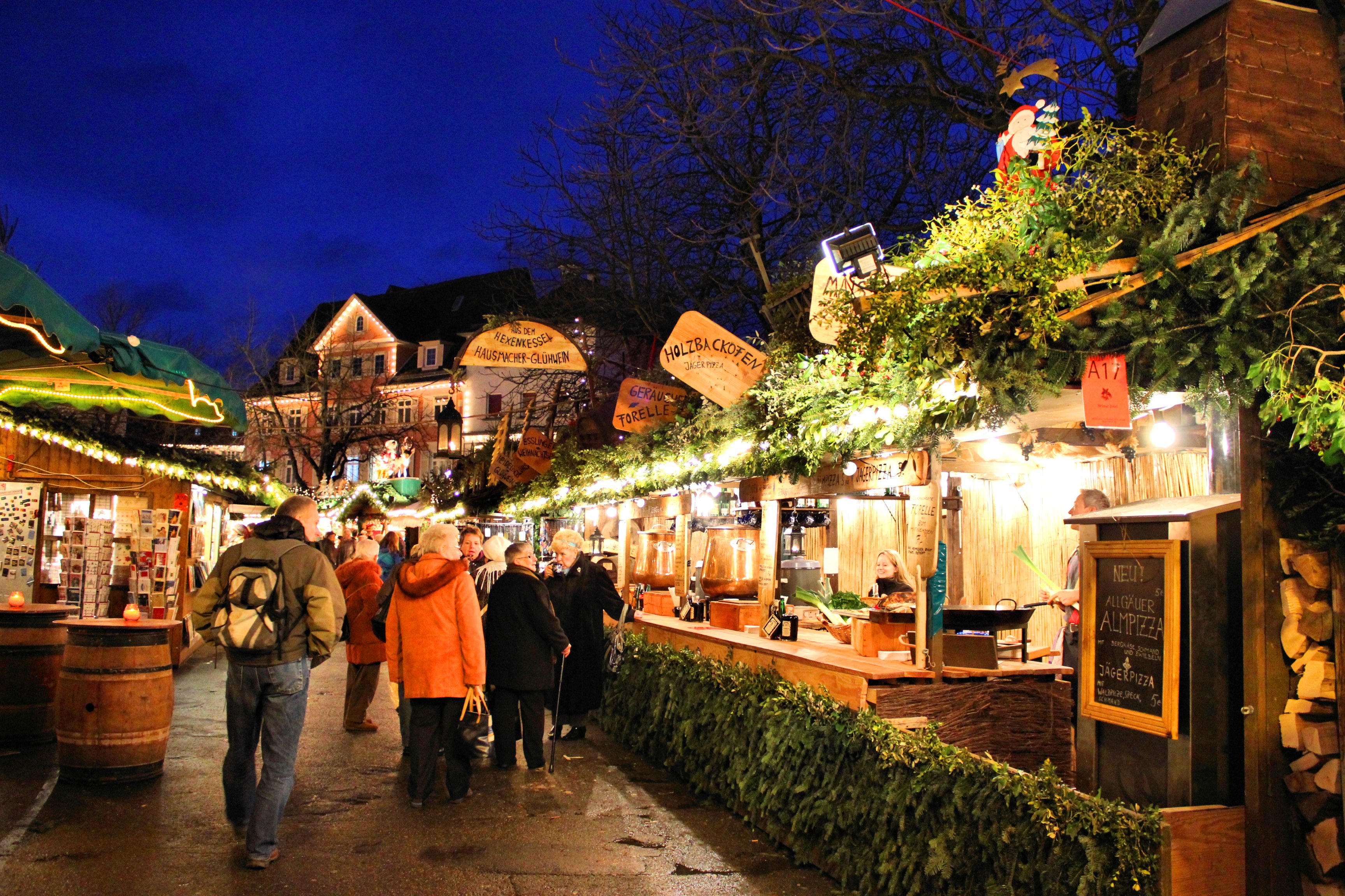 Обои Рождественский день, Рождественский рынок, ночь, городок, туризм, фото, заставка