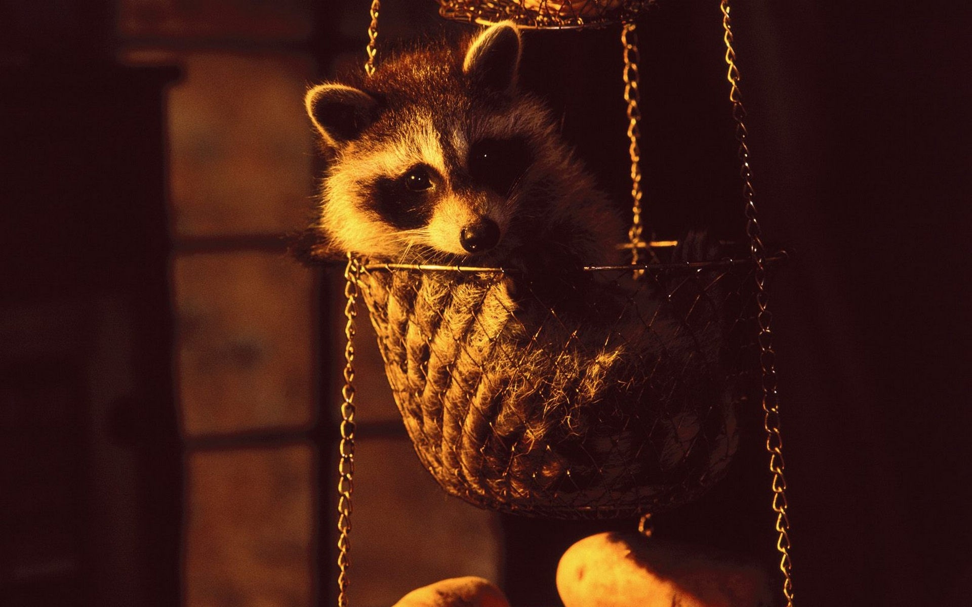 Обои Енот, procyonidae, морда, мех, мрак, фото, заставка