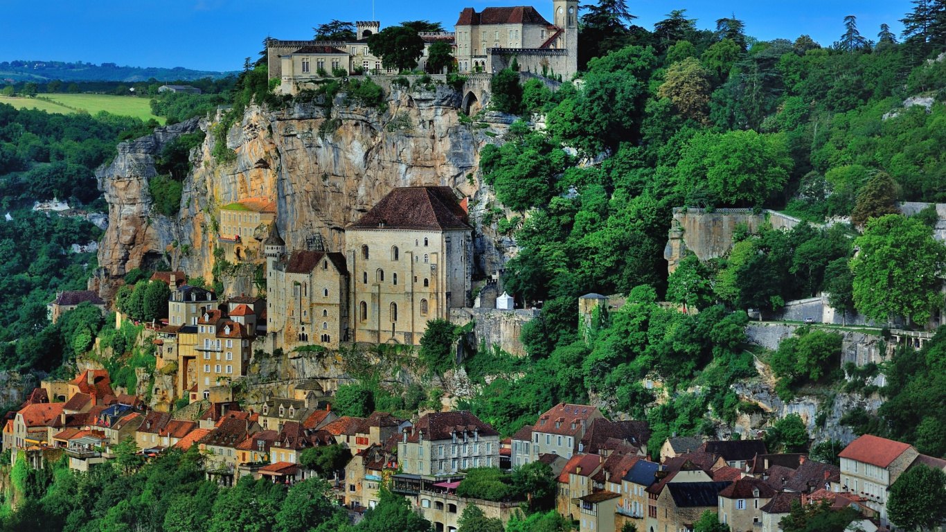 Обои 1366x768 Рокамадур, горная деревня, деревня, город, замок, HD ready картинка