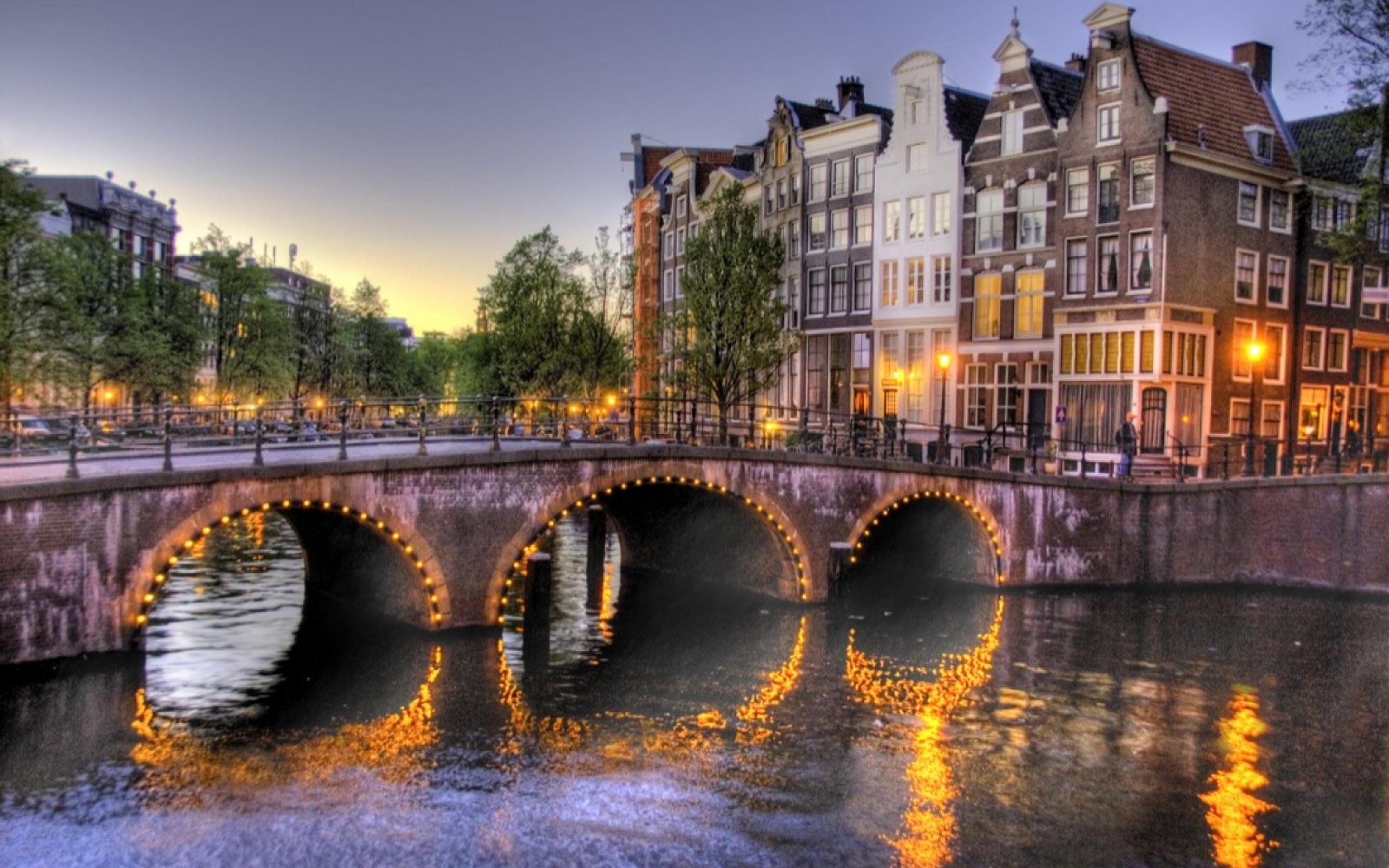 Обои отражение, вода, водный путь, ночь, городок, фото, заставка