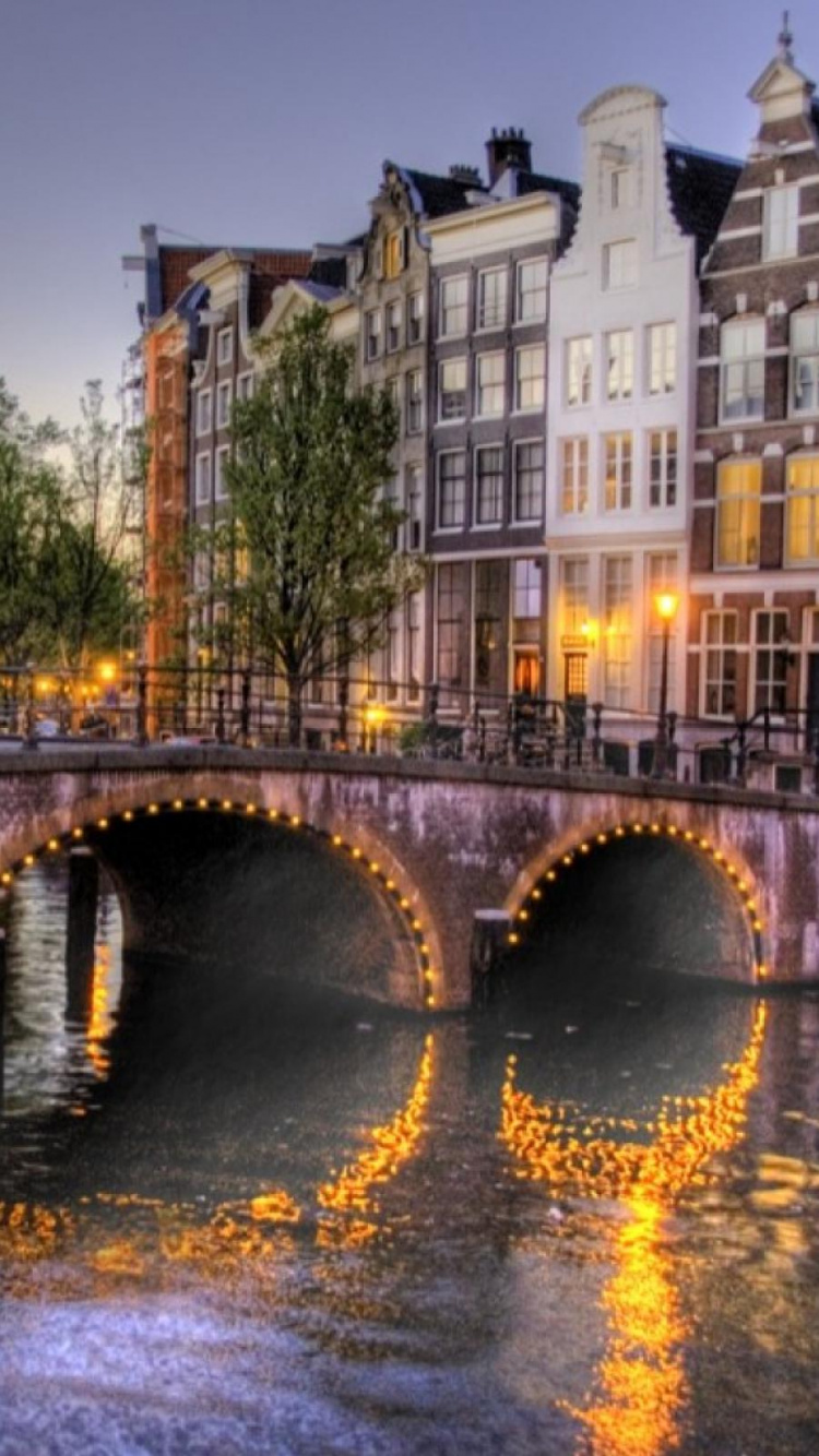 Обои отражение, вода, водный путь, ночь, городок для iPhone 6, 6S, 7, 8, заставка, 750x1334 картинка