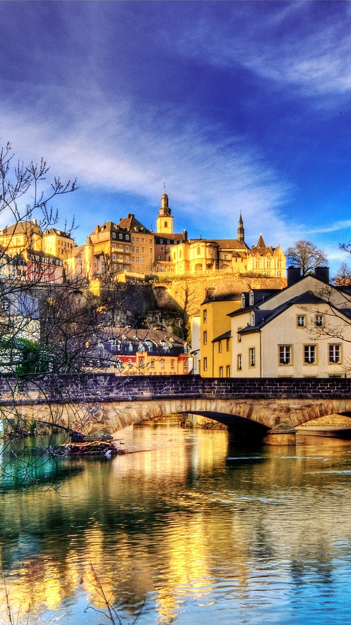 Обои отражение, природа, вода, водный путь, городок для HD Samsung Galaxy S3/J3/J4/J5, Meizu M5, Sony Xperia L1/L2, заставка, 720x1280 картинка