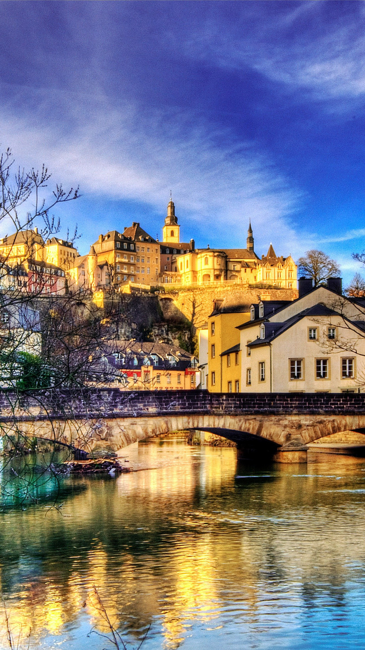 Обои отражение, природа, вода, водный путь, городок для iPhone 6, 6S, 7, 8, заставка, 750x1334 картинка