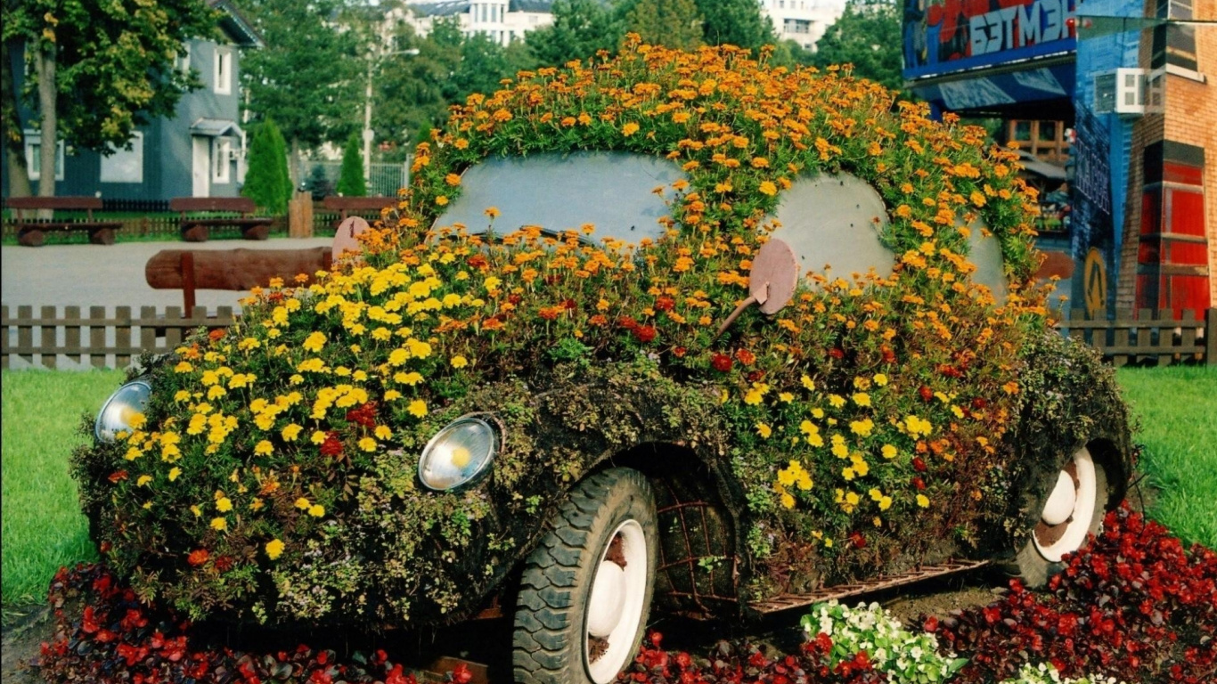 Обои 1366x768 цветник, сад, дерево, декоративное искусство, садоводство, HD ready картинка
