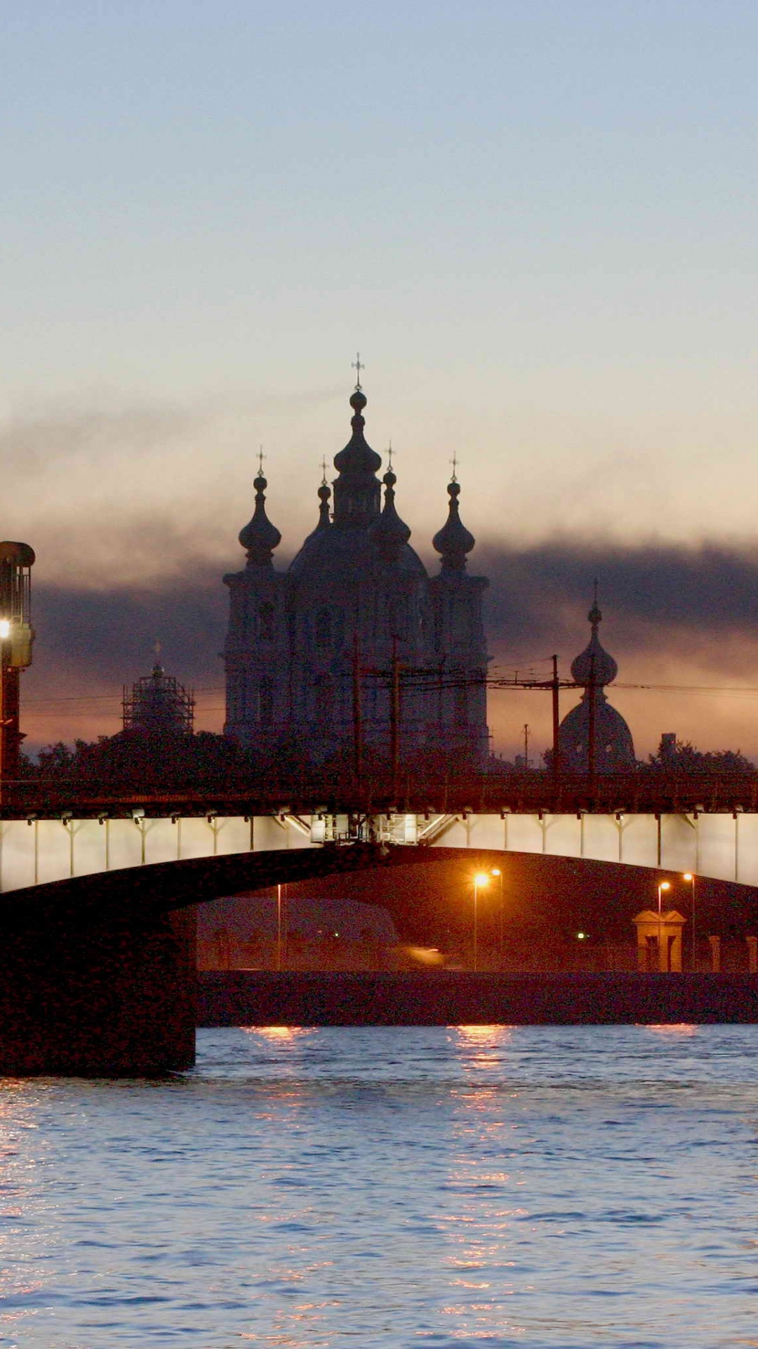 Обои ориентир, мост, город, водный путь, вечер на телефон Android, 1080x1920 Full HD картинки