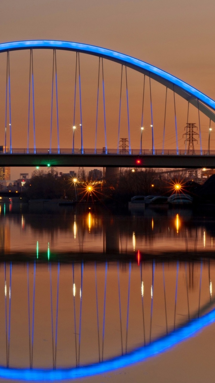 Обои отражение, миннеаполис, мост, ночь, вода для HD Samsung Galaxy S3/J3/J4/J5, Meizu M5, Sony Xperia L1/L2, заставка, 720x1280 картинка