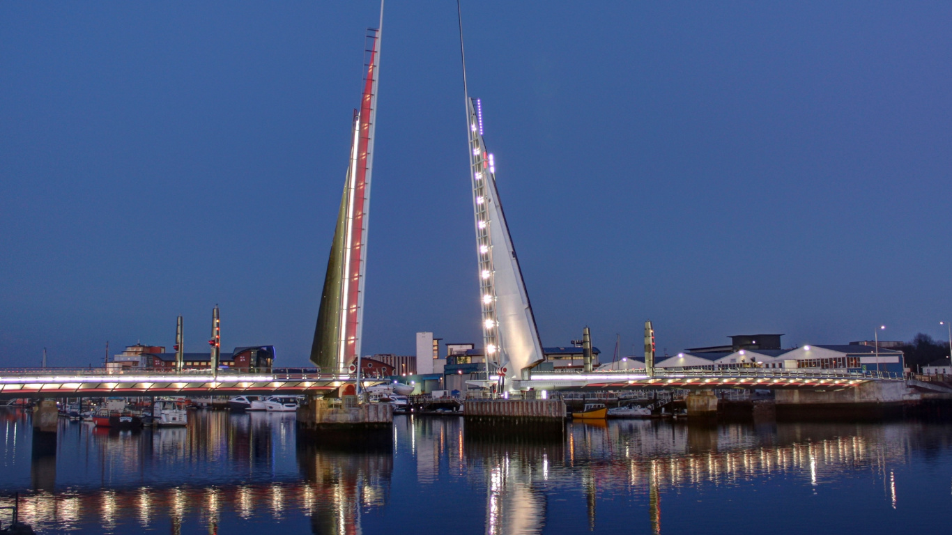 Обои 1366x768 мост, Две Мостик Паруса, раскрывающийся мост, подъемный мост, вышка, HD ready картинка