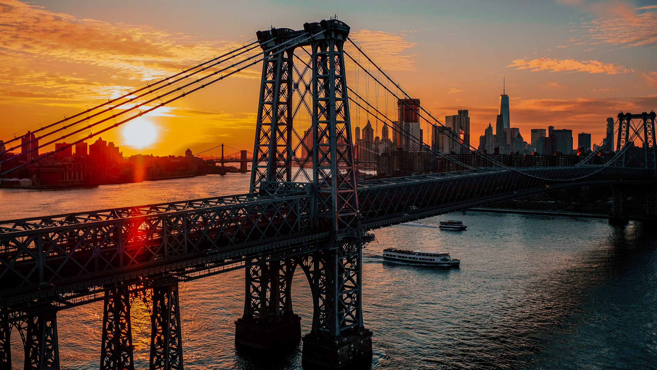 Обои 2560x1440 Вильямсбургский Мост, Бруклинский мост, мост, подвесной мост, сумрак, WQHD, QHD, 16:9 картинка