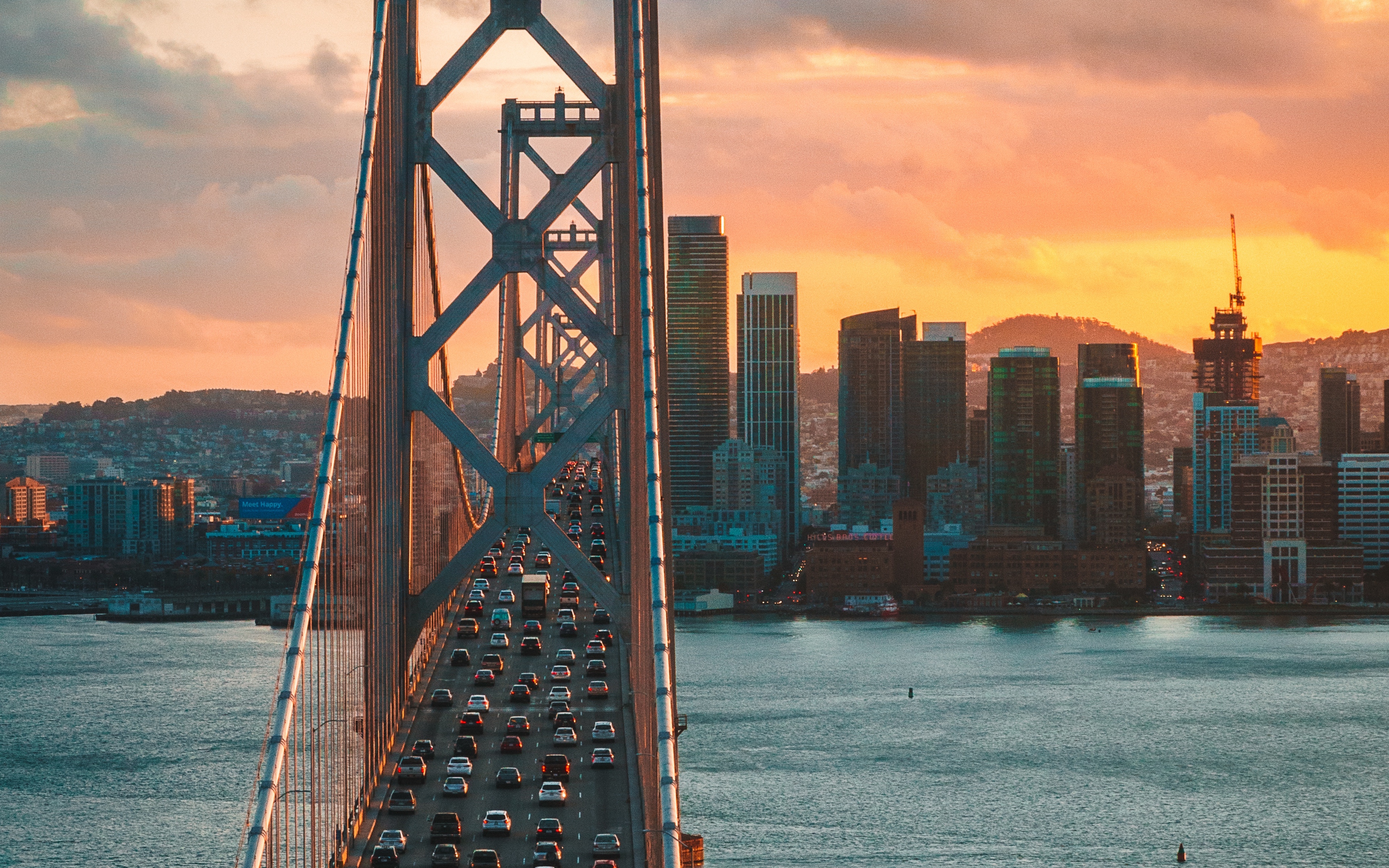 Обои Окленд Бэй Бридж, Сан-Франциско-Окленд Бэй-Бридж, мост, город, городской пейзаж, фото, заставка