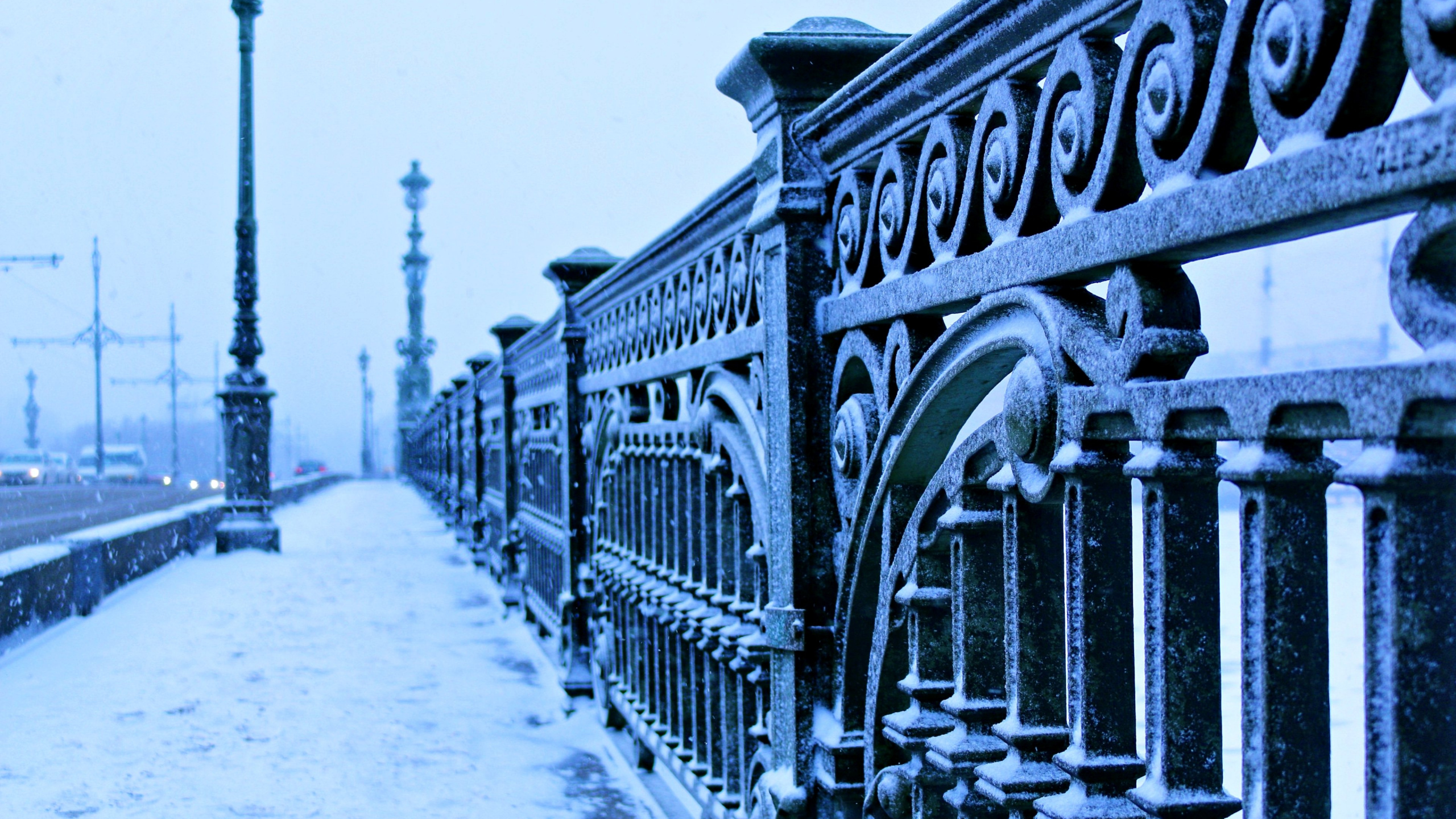 Обои 2560x1440 мост, зима, город, снег, замораживание, WQHD, QHD, 16:9 картинка