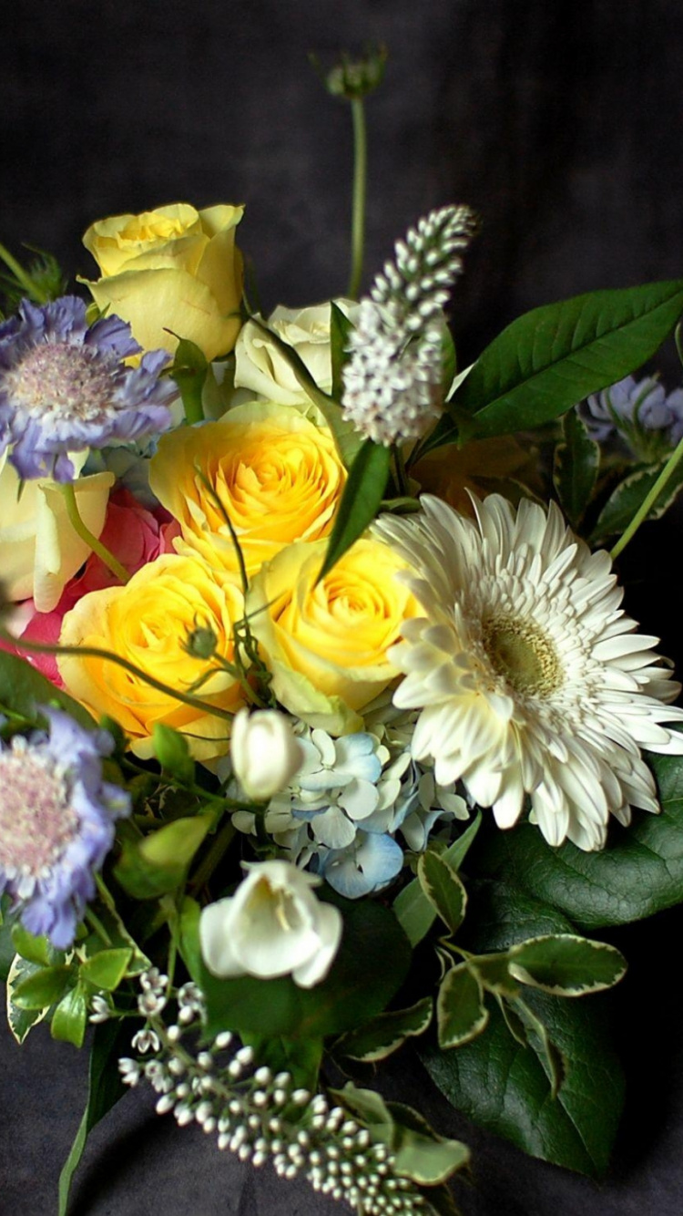 Обои цветочный букет, цветочный дизайн, трансвааль Дейзи, срезанные цветы, флористика для iPhone 6, 6S, 7, 8, заставка, 750x1334 картинка