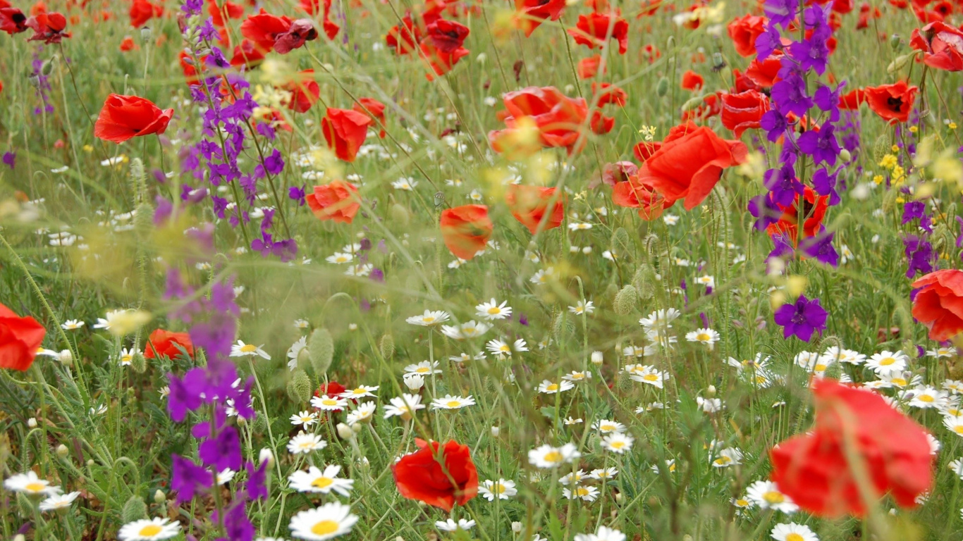 Обои 1366x768 полевой цветок, луг, растение, весна, экосистема, HD ready картинка