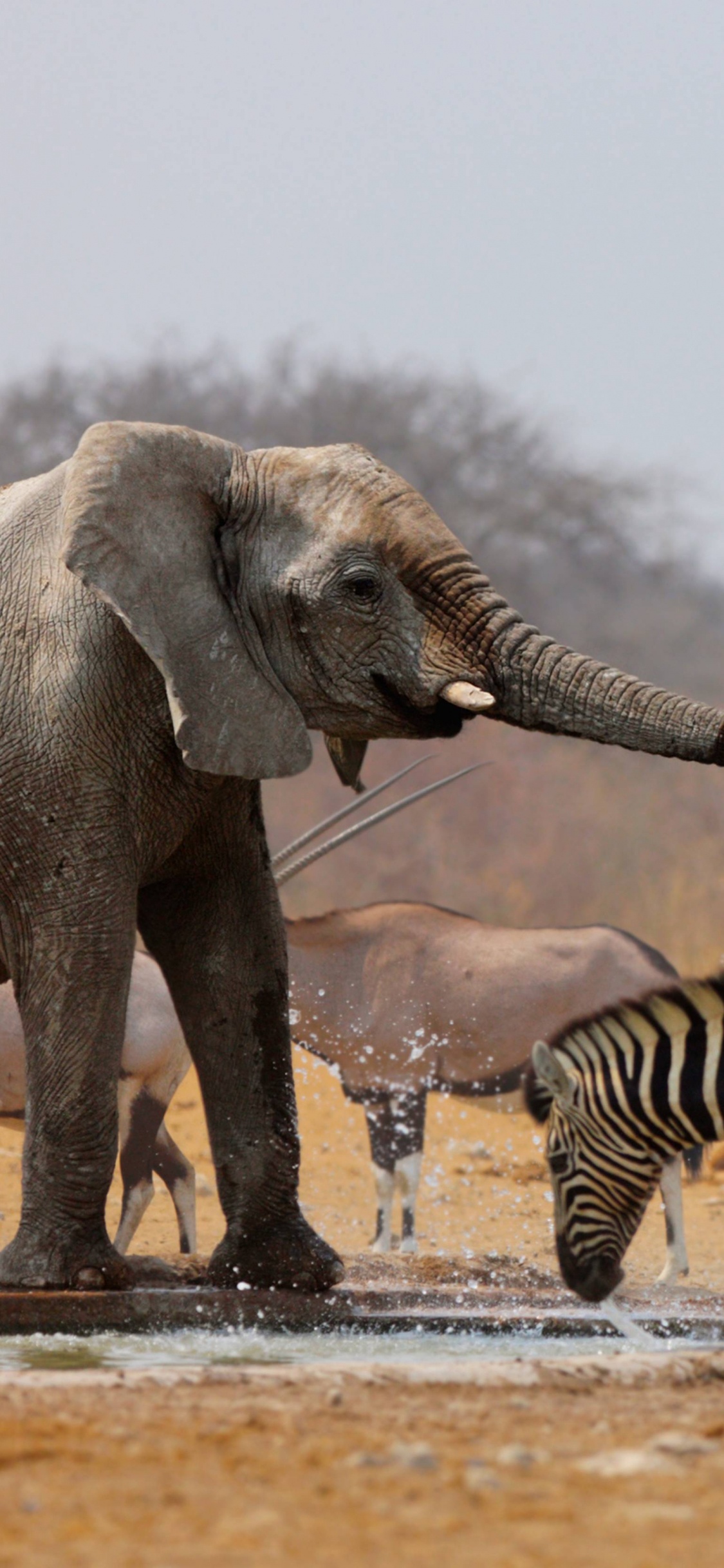 Обои природный заповедник, сафари-парк, стадо, бивень, жилье для iPhone X / XS, заставка, 1125x2436 картинка