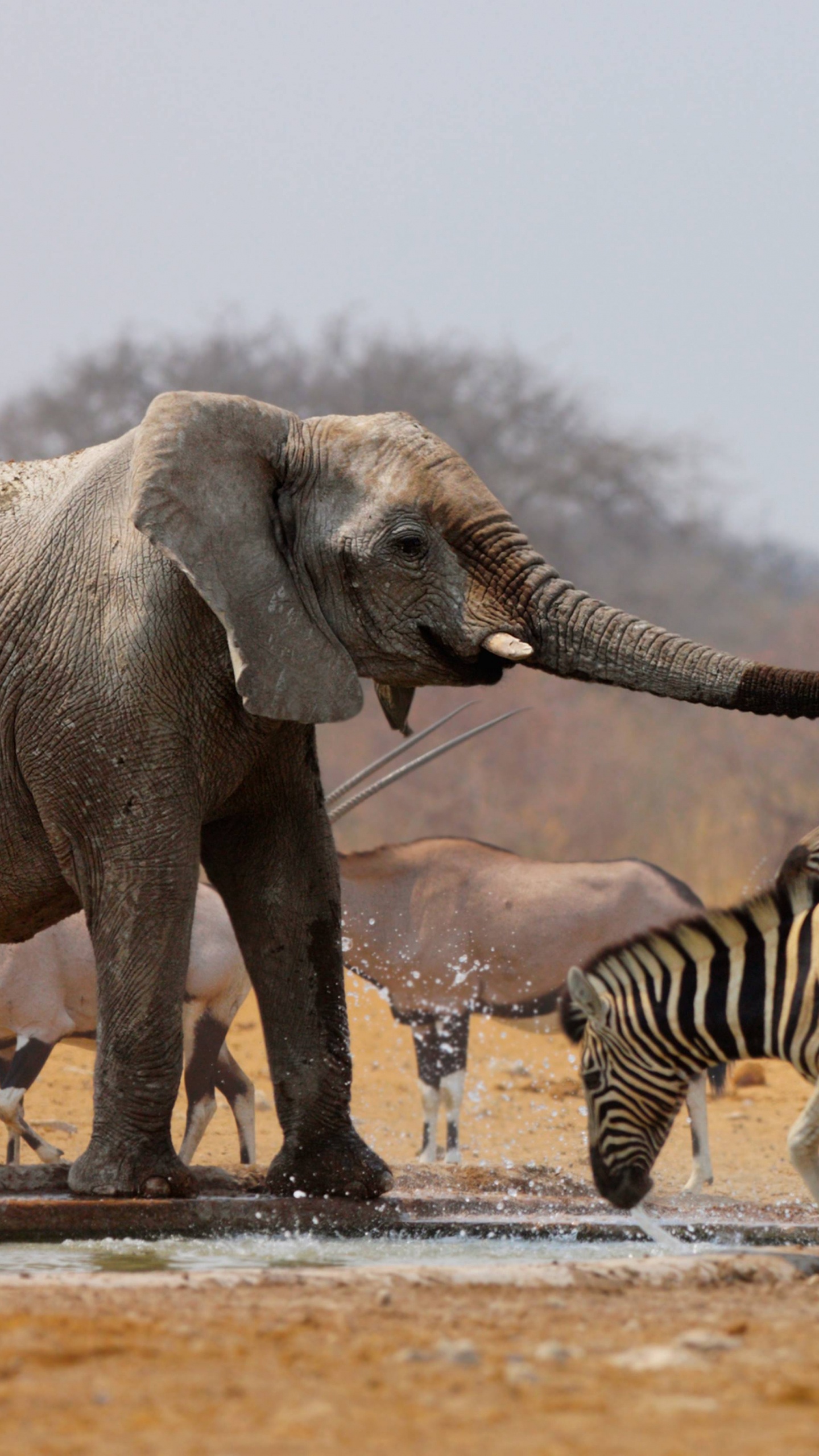 Обои природный заповедник, сафари-парк, стадо, бивень, жилье для Google Pixel XL, Meizu Pro 7, Nokia 8, HTC U, Huawei P10 Quad HD, заставка, 1440x2560 картинка