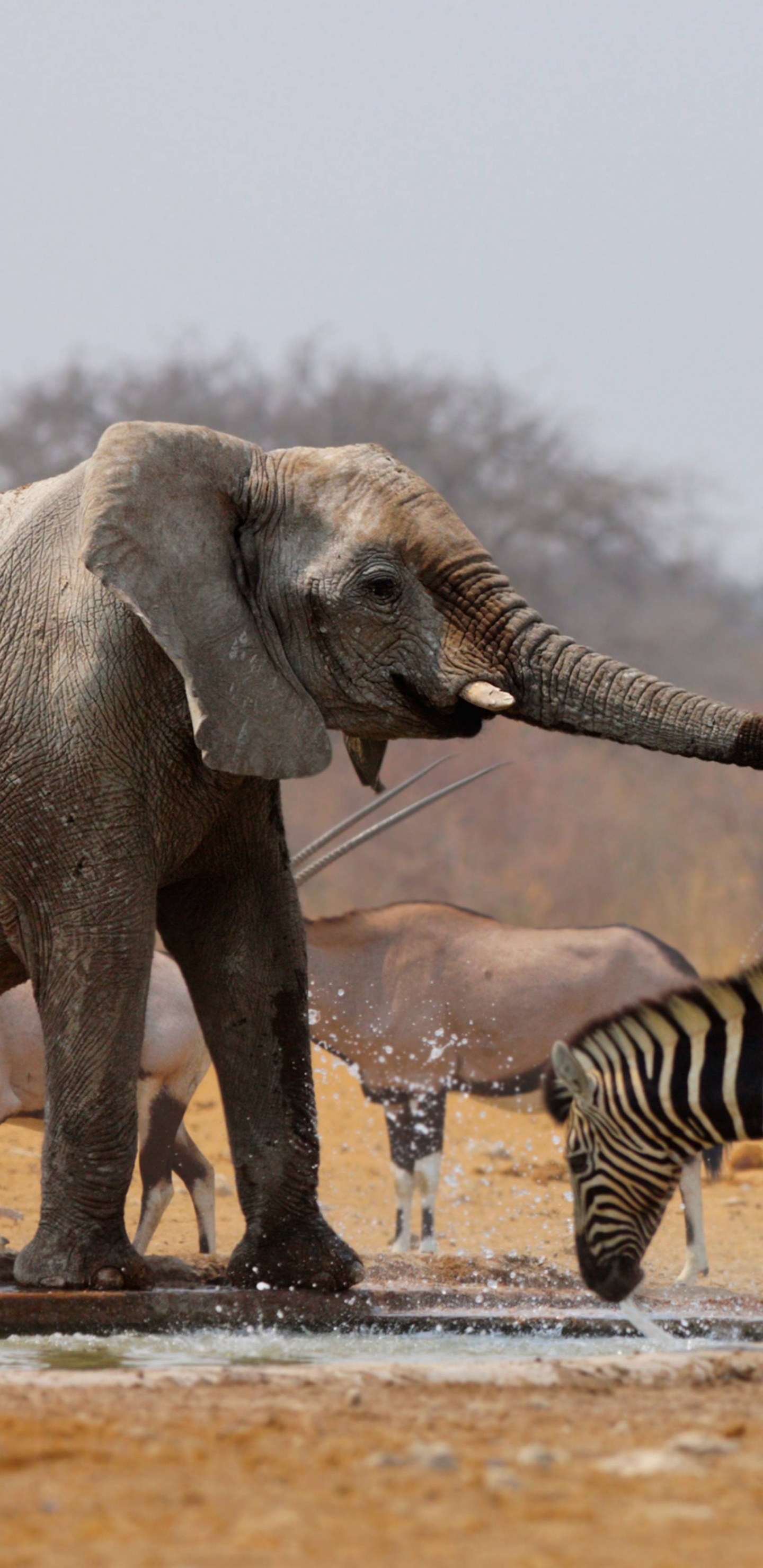 Обои природный заповедник, сафари-парк, стадо, бивень, жилье для Samsung Galaxy S8/S8+/S9/S9+/Note 8/Note 9 QHD, заставка, 1440x2960 картинка