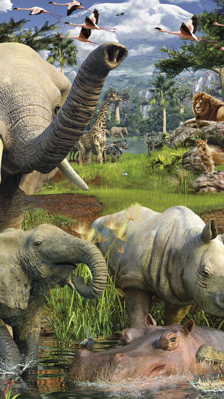 Обои Равенсбургер У Водопоя, наземные животные, Слон, живая природа, слоны и мамонты для iPhone 6, 6S, 7, 8, заставка, 750x1334 картинка