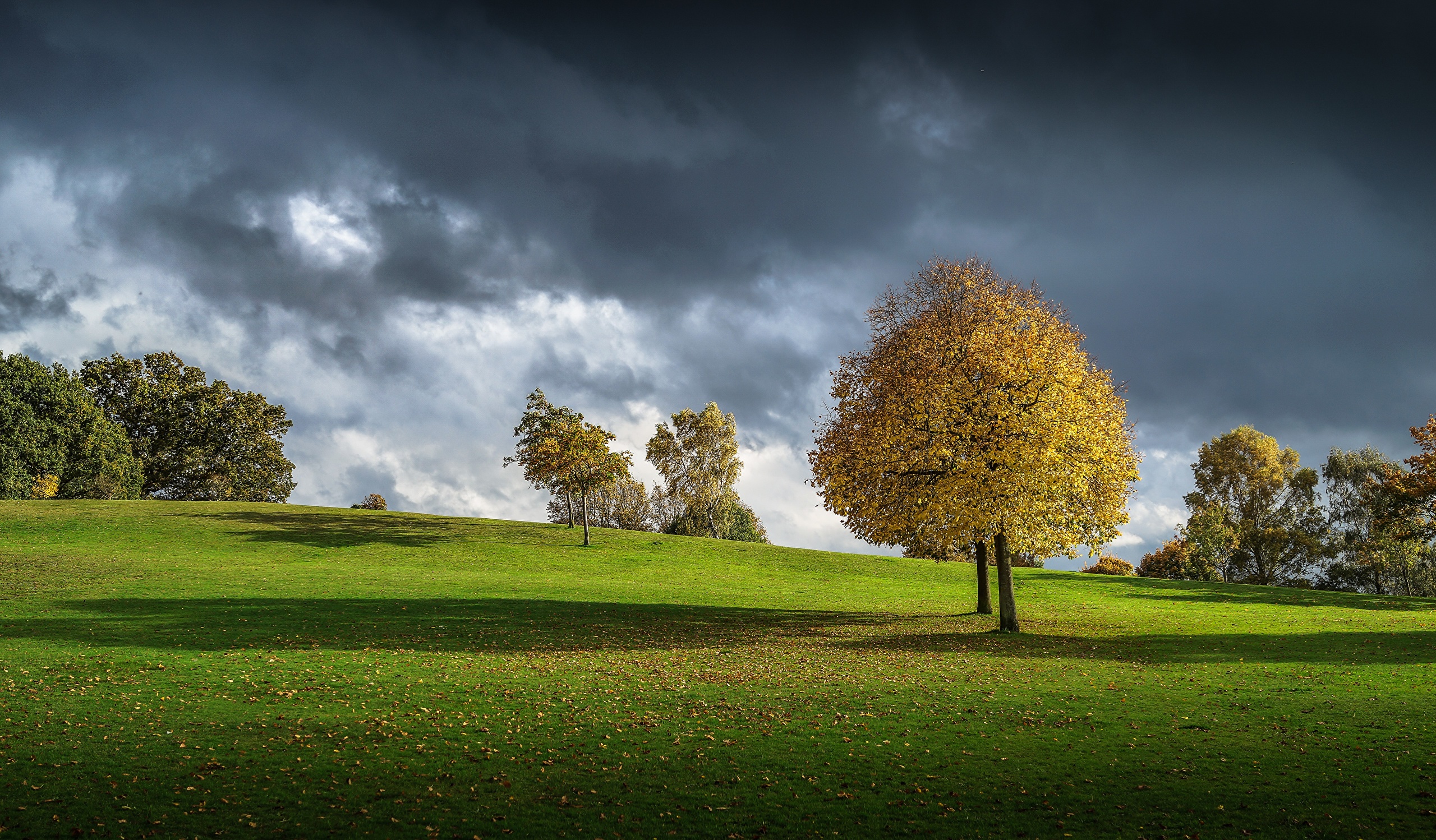Обои дерево, природа, облако, сенокосное угодье, трава, фото, заставка