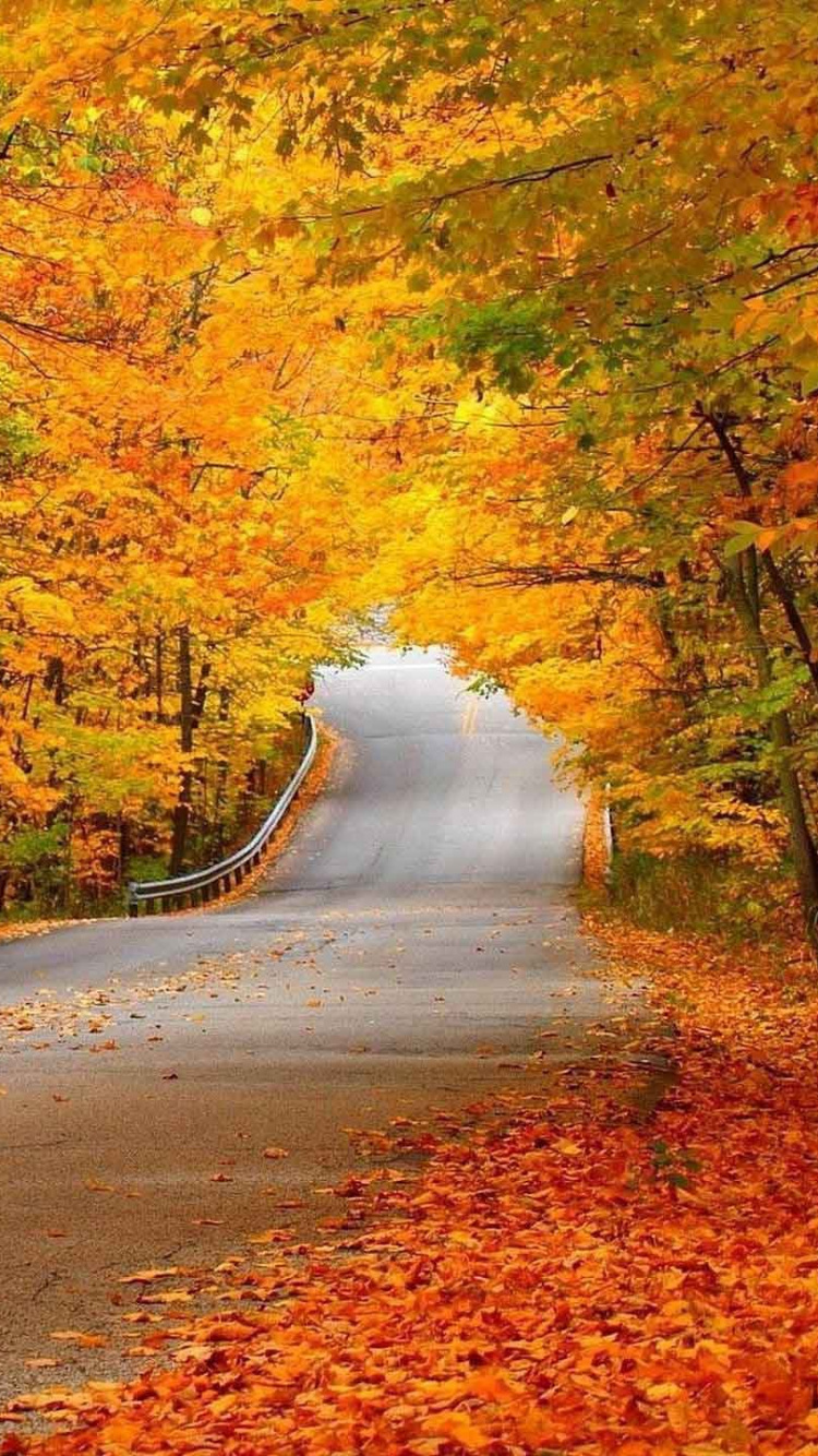 Обои осень, дорога, природа, лист, листопадные для iPhone 6, 6S, 7, 8, заставка, 750x1334 картинка