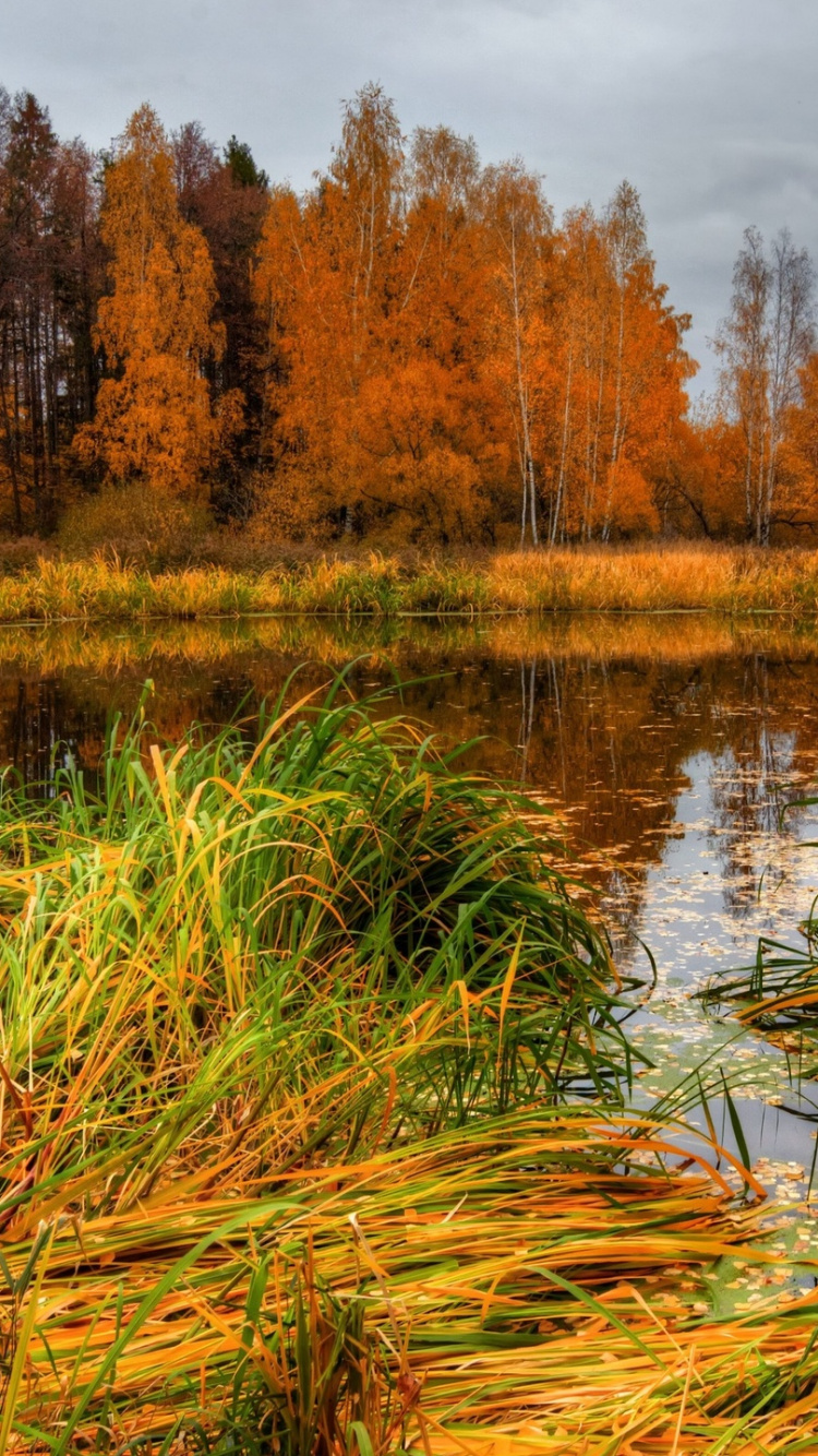 Обои осень, природа, отражение, природный заповедник, дикая местность для iPhone 6, 6S, 7, 8, заставка, 750x1334 картинка