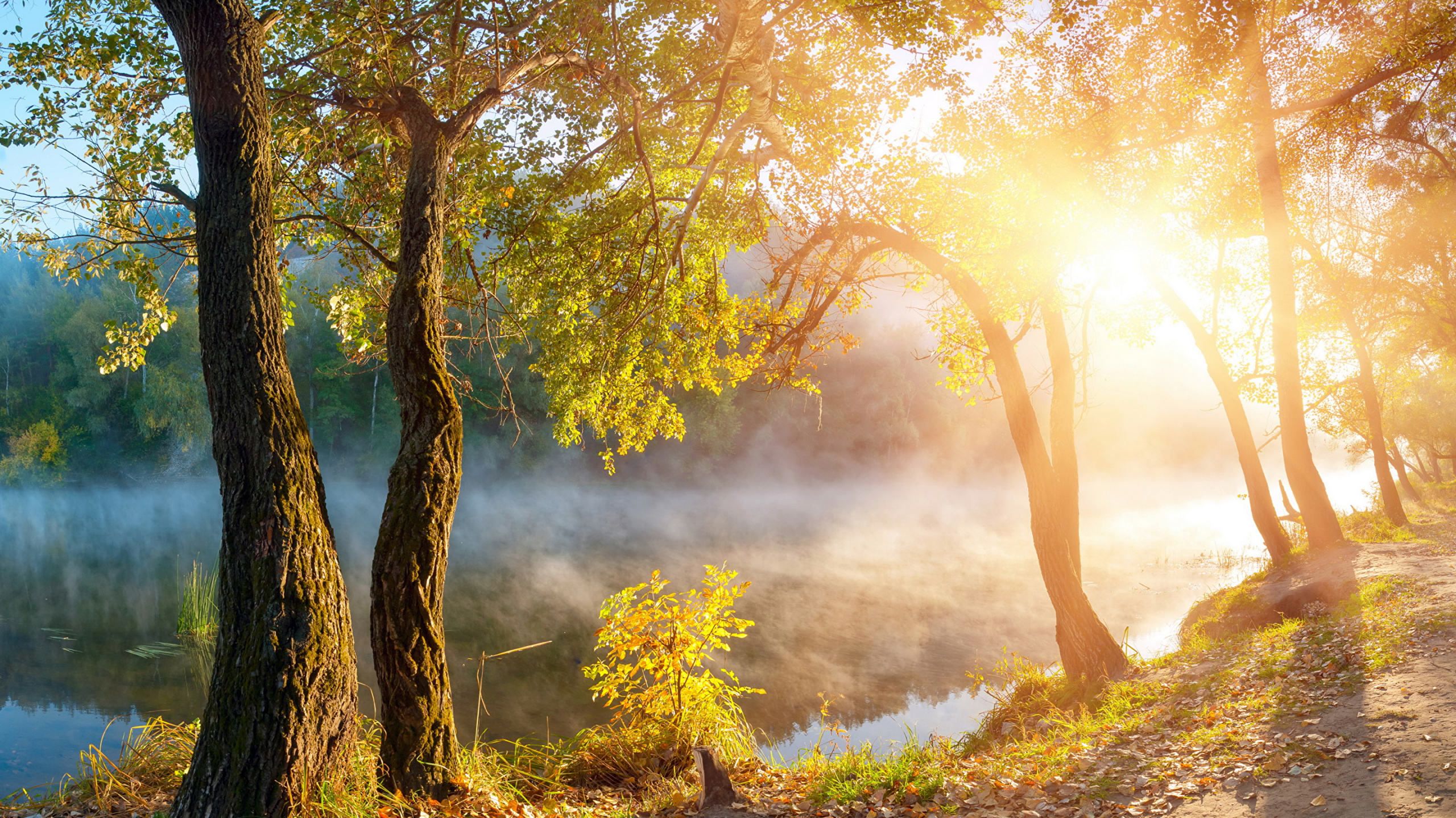 Обои 2560x1440 осень, природа, солнечный свет, утро, лес, WQHD, QHD, 16:9 картинка